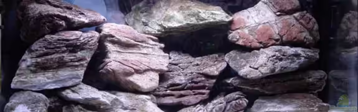 div. Steine die teils die Heizung und den Innenfilter verdecken und div.Verstecke bilden