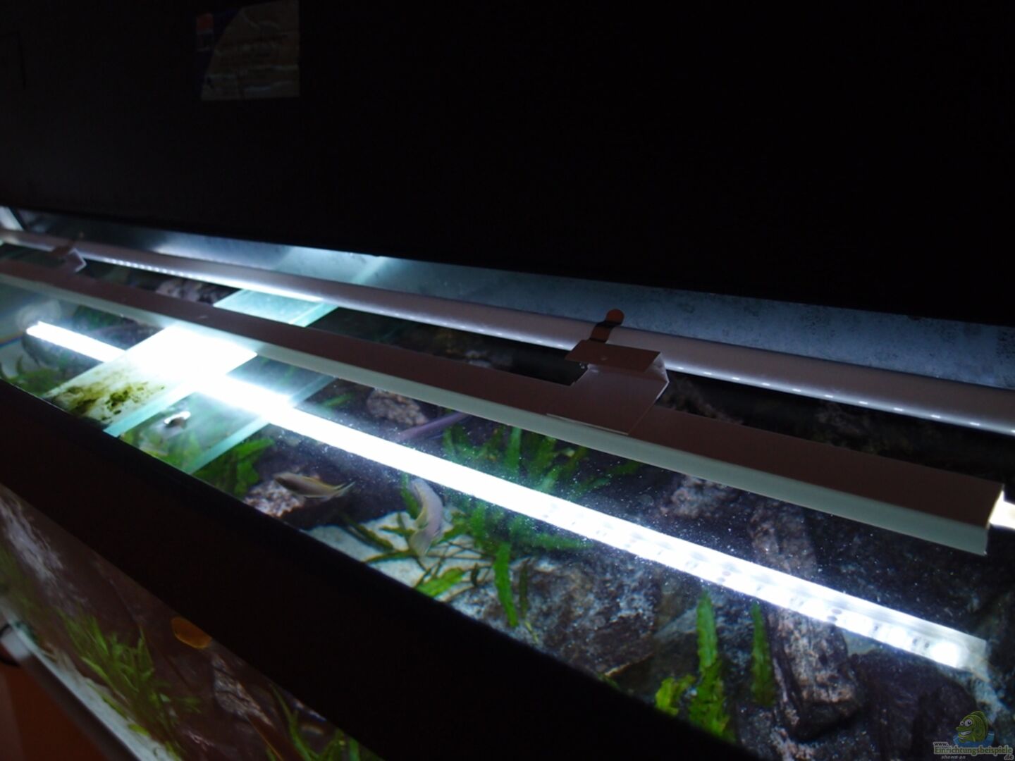dimmbar, 30 LEDs auf 50cm Länge, die flexible LED-Leiste wurde an der vorderen T5-Röhre befestigt.