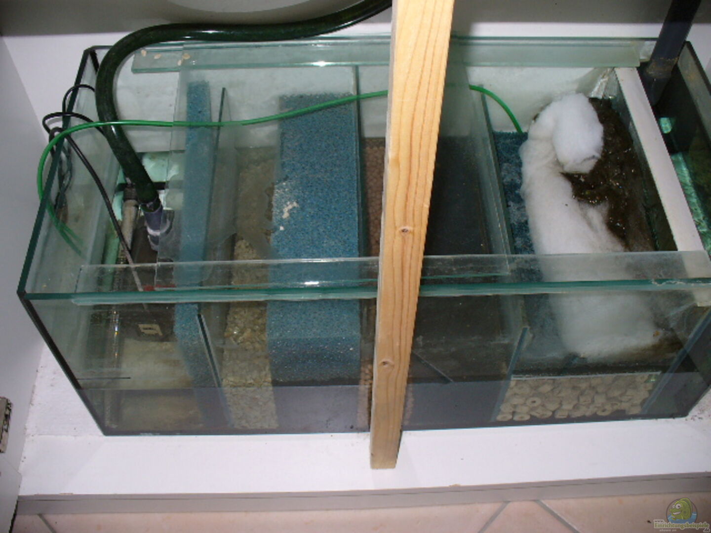 Dazu wurden noch Valisnerien gepflanzt und eine höhenverschiebbare Trennscheibe eingebaut damit die nun zusätziche Fleischkost auch (meistens) die richtigen Abnehmer findet.