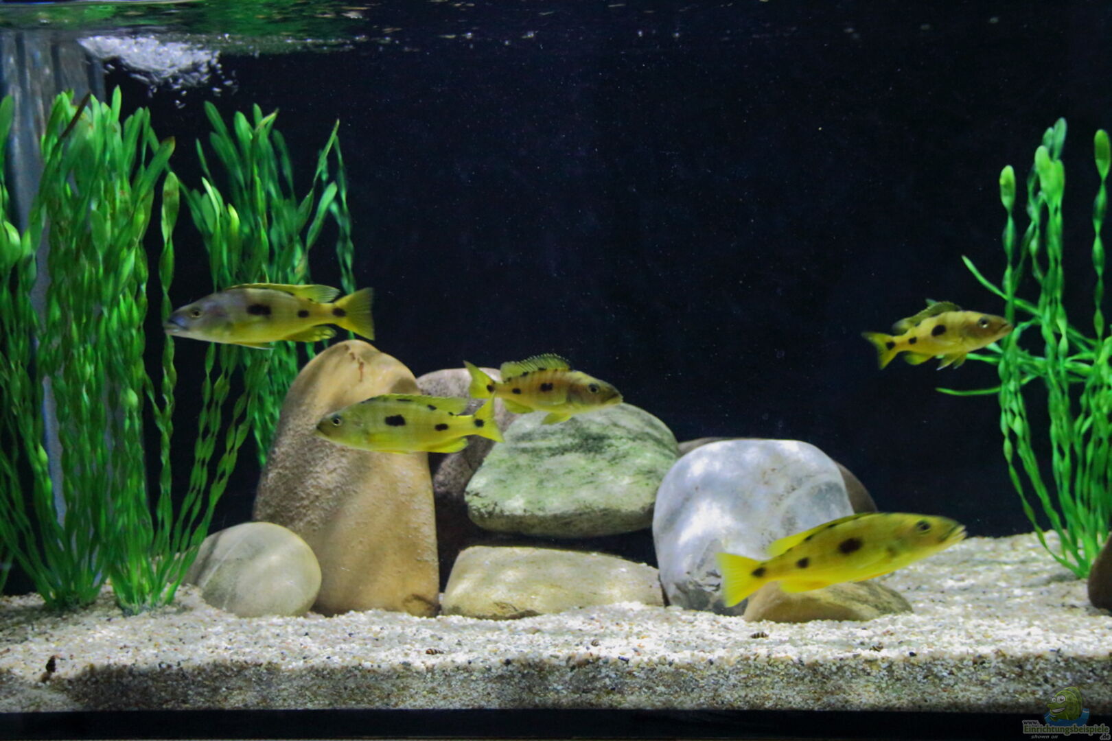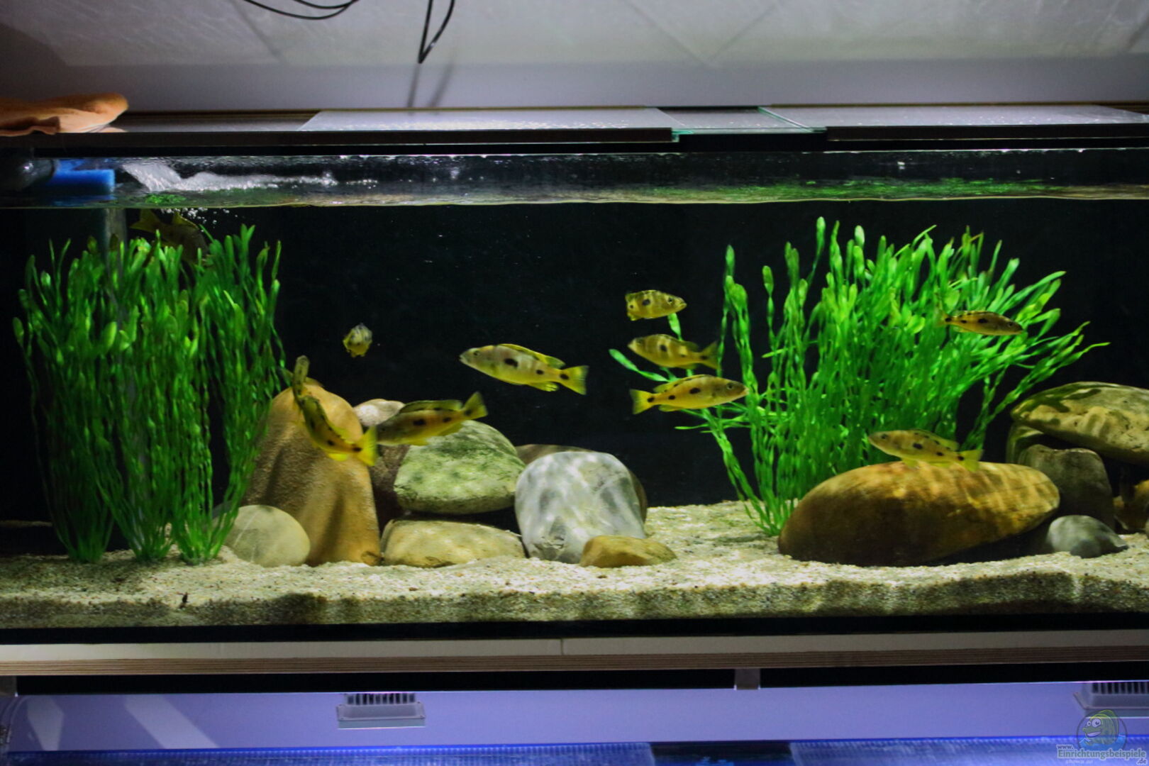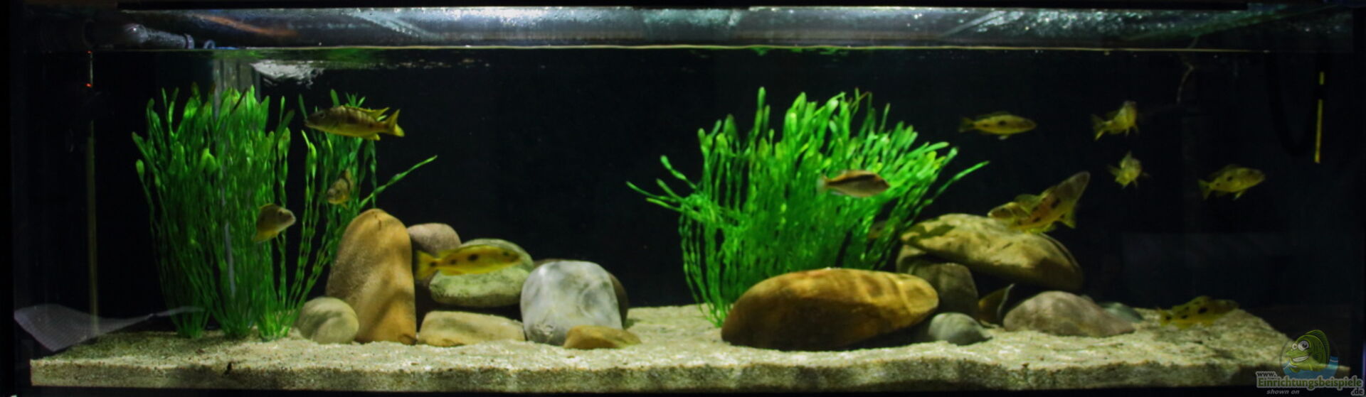 Dieses Artbecken dient als Zuchtbecken. Habe die Teire mit ca. 5-8cm vor ca. 12-14 Monaten gekauft. Mittlerweile haben sie 12-17cm. Exochochromis anagenys gehören zu meinen Lieblingen aus dem Malawisee. Sie sind anspruchsvoll in der Pflege, deshalb auch eine Herausvorderung.