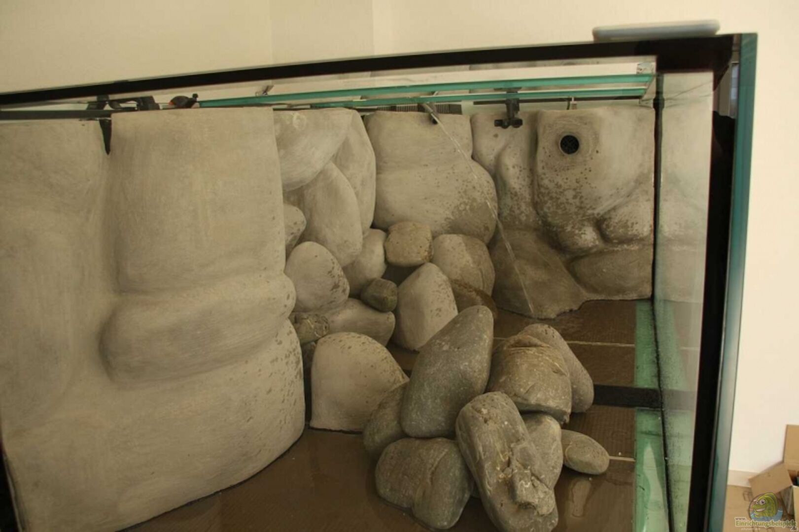 Die anderen Steine in Becken sind echt und kommen aus einem Kieswerk in der nähe. Diese wurden so gesetzt das sie Hölen zum verstecken ergeben.