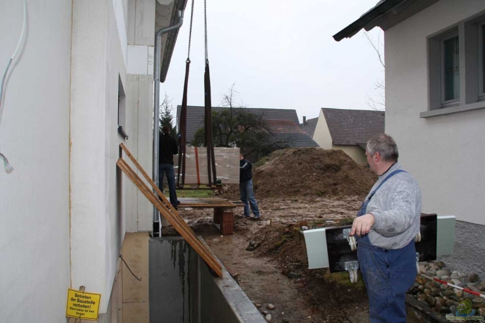 Das Becken selber steht mit der Längsseite 0, 5m von der Wand weg damit ich hinter das Becken kann um an die Technik zu kommen.