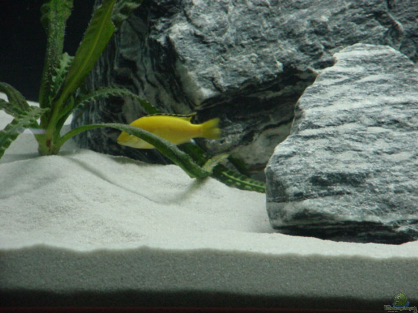 Mittig im Aquarium auf 2 cm Dämmplatte mit Höhlen aufgebaut und kann von den Fischen umschwommen werden.