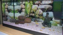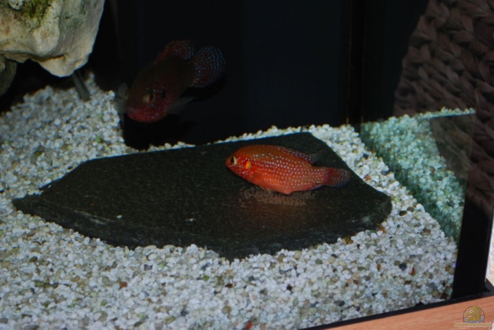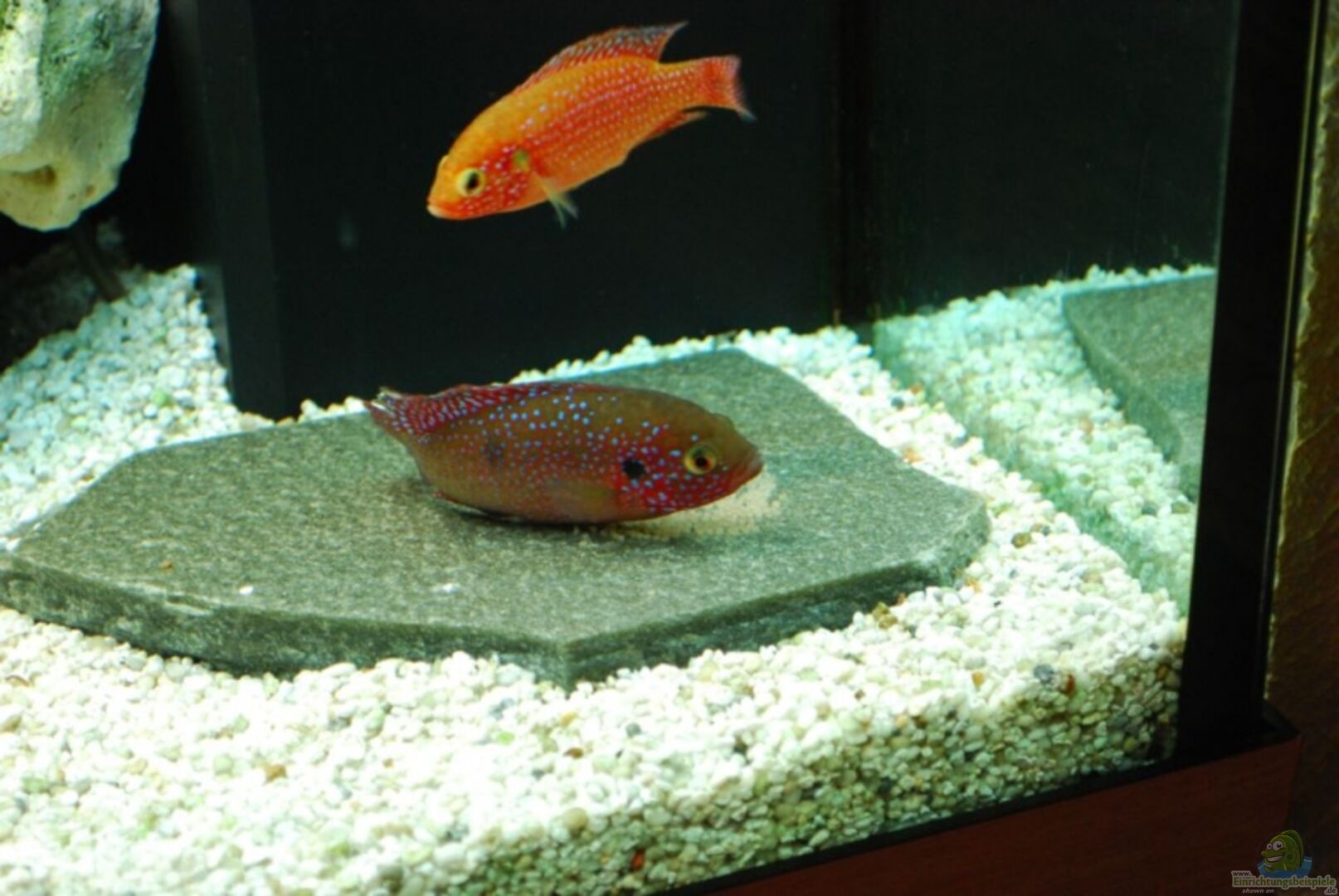 schönes becken.viele viele steine und somit versteckmöglichkeiten für deine fische, da wird der nachwuchs nicht mehr lange auf sich warten lassen. ich würde allerdings den besatz nochmal überdenken. die ww sind für die hemichromis nicht gerade obtimal, da sehr hart und zu hoher ph wert. ausserdem sind es ziemlich viel für 260 l. ich habe selber 1 paar drin, es geht aber ich hab weiches wasser und den ph wert nicht so hoch. sollten beide paare irgendwann gleichzeitig junge haben dann kannst dich, bzw. deine anderen arten sich aber warm anziehen. für die bleibt dann nämlich sogut wie garkein platz im becken. ich würd mich von einer art trennen, optimal wären die hemichromis, wenn du das aber nicht willst dann belasse sie bei einem paar und trenn dich eventuell von den kaiserbubas. trotzdem 5 punkte da soweit ganz ok