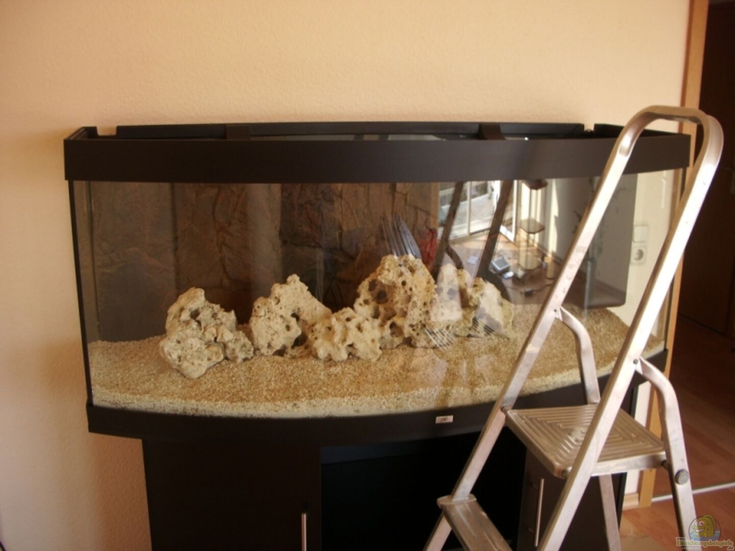 ca. 25 kg Korallensplitt und ca. 50 kg feinen Quarzsand bis 1mm.