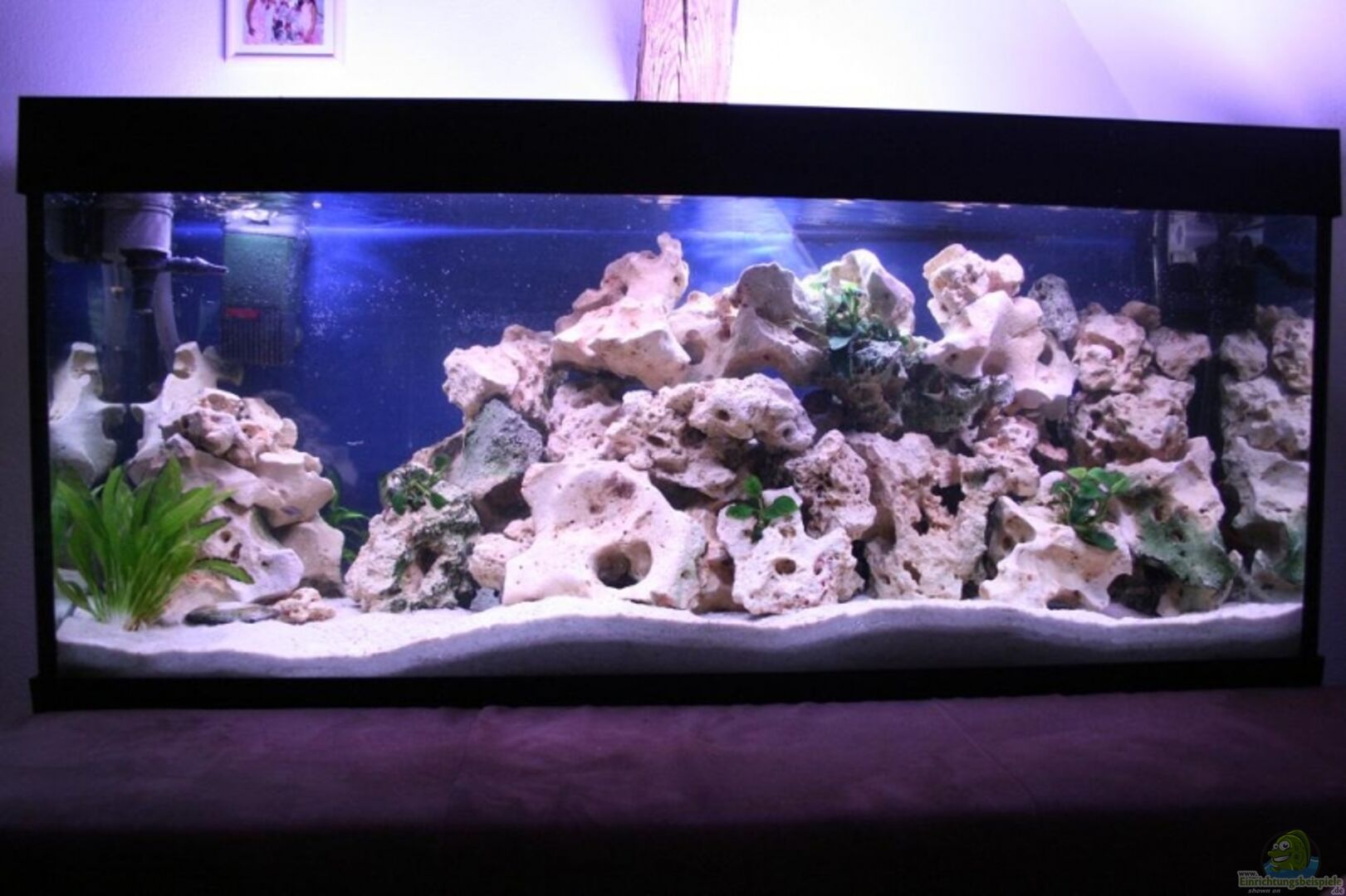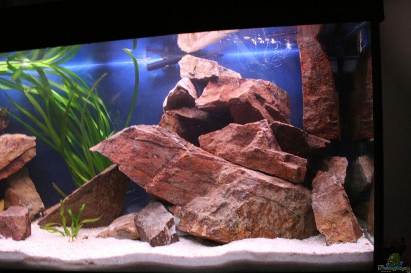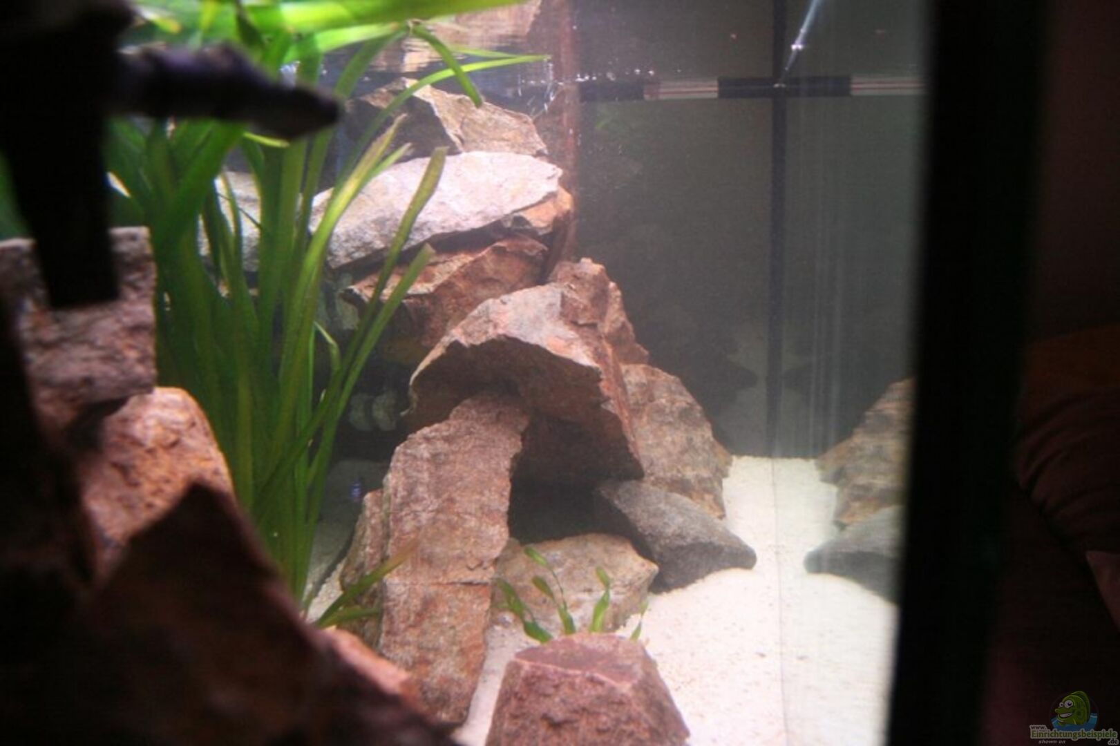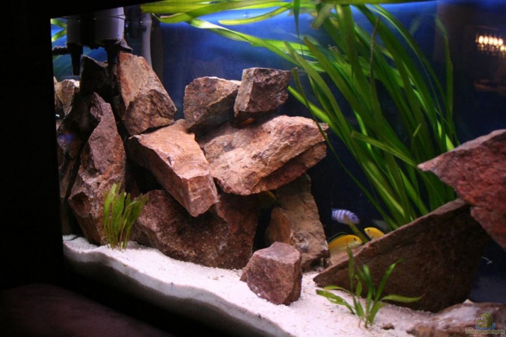 schön ist dein Becken geworden. Technik gut versteckt (hast du einen Scheibenschutz hinter die Steine getan ?). Ich habe auch Yellow´s und Demasoni´s.Wie machst du das mit dem Futter ?