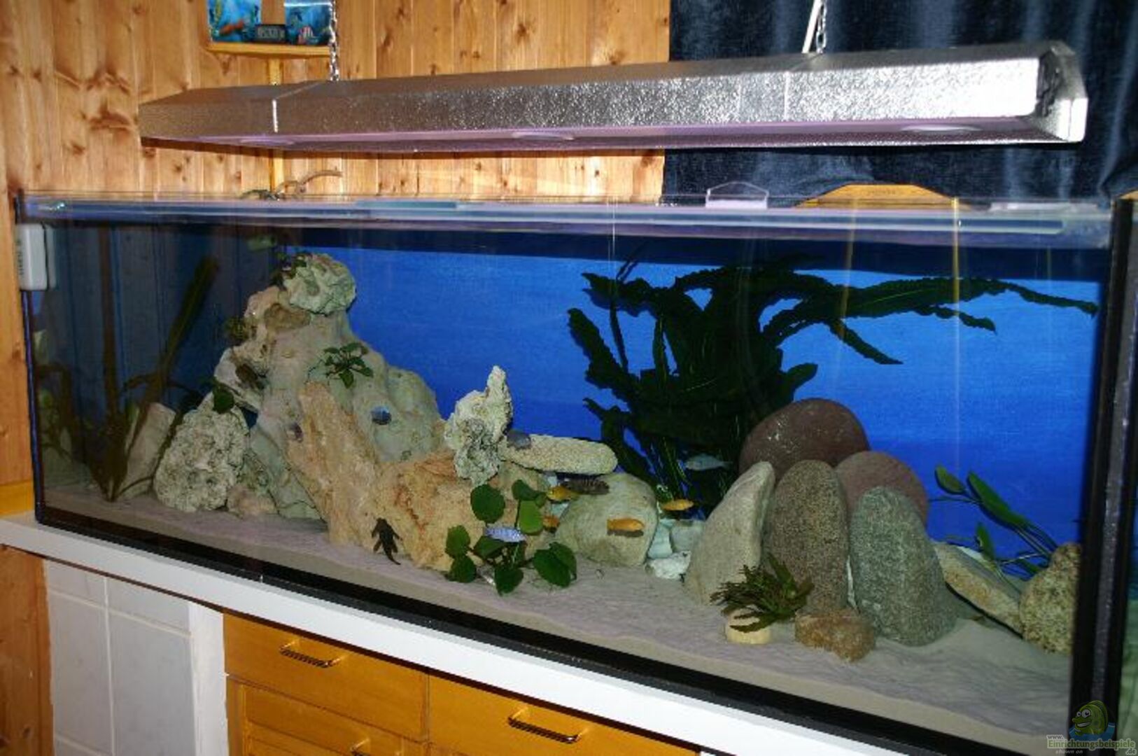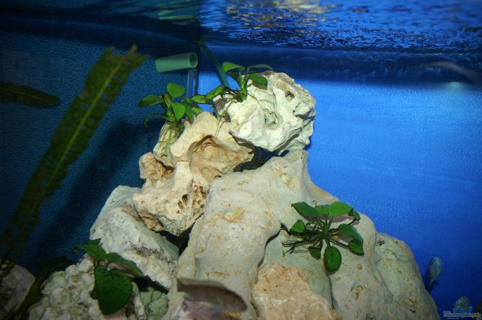 Das Aquarium steht auf einem, mit Ytongsteinen selbst gebauten, Unterbau den mein Mann extra dafür errichtet hat. Ebenso hat er die Beleuchtung in liebevoller Kleinarbeit selbst zusammengebaut.
