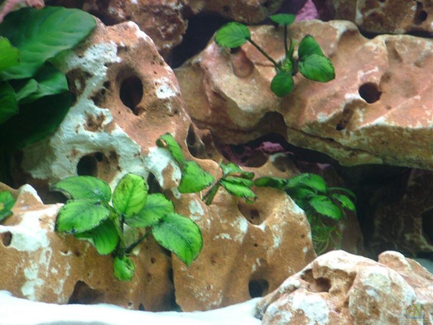 Ein Becken mit einer sehr schönen und naturellen Einrichtung. Besonders die Steinaufbauten mit ihrer Bepflanzung kommen gut zur Geltung. Leider fast das Becken nur 200 ltr. und die Steinaufbauten reduzieren zusätzlich noch das Volumen. Der Fischbesatz ist in Ordnung, wobei ich aber die Pseudotropheus lombardoi entfernen würde.