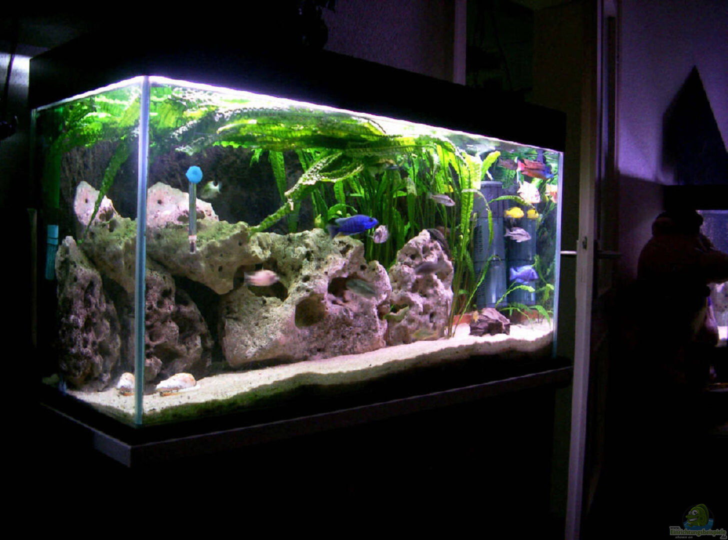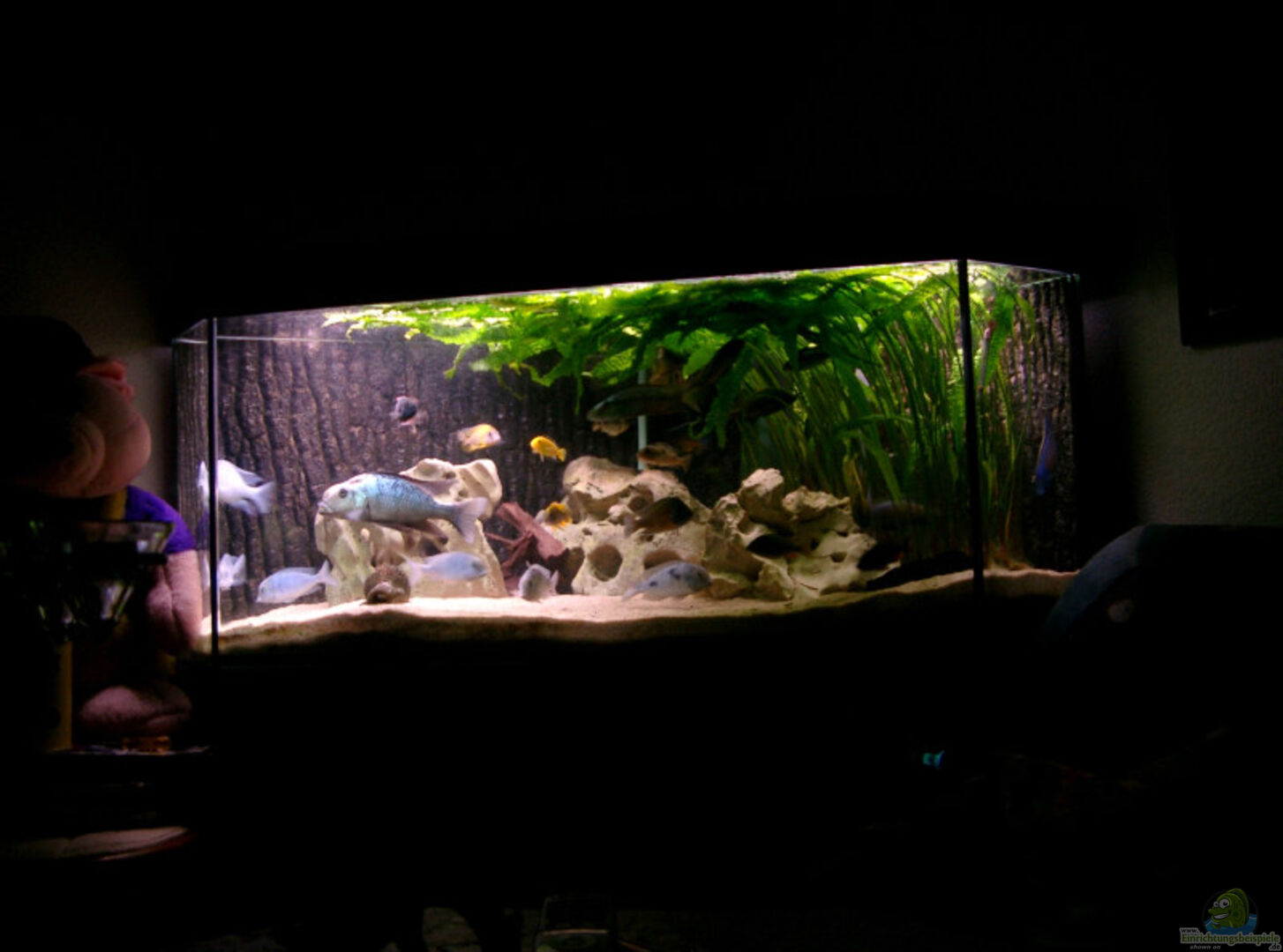 Eigentlich ein tolles Becken mit sehenswerter Einrichtung. Aber der Fischbesatz ist schon fast an der Grenze zur ?berfüllung, weil die Arten auf den Bildern schon nahezu ausgewachsen sind. Die Fisch zeigen tolle Farbausstrahlungen.