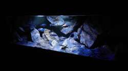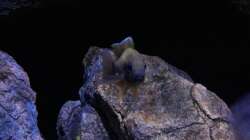 Ein grosses beschwimmbares AFstyle Modul welches ich direkt mit schwarzem JBL Silikon auf die Bodenscheibe geklebt habe. Das Modul ist fast zur Hälfte nach hinten offen und kann auch von grösseren Fischen als Unterstand genutzt werden. Die flache Oberseite des grossen Modules war eigentlich als Laichplatz für meinen Protomelas gedacht. Der hebt sich aber lieber selber eine Laichgrube aus und paart sich immer über der Sandfläche..........