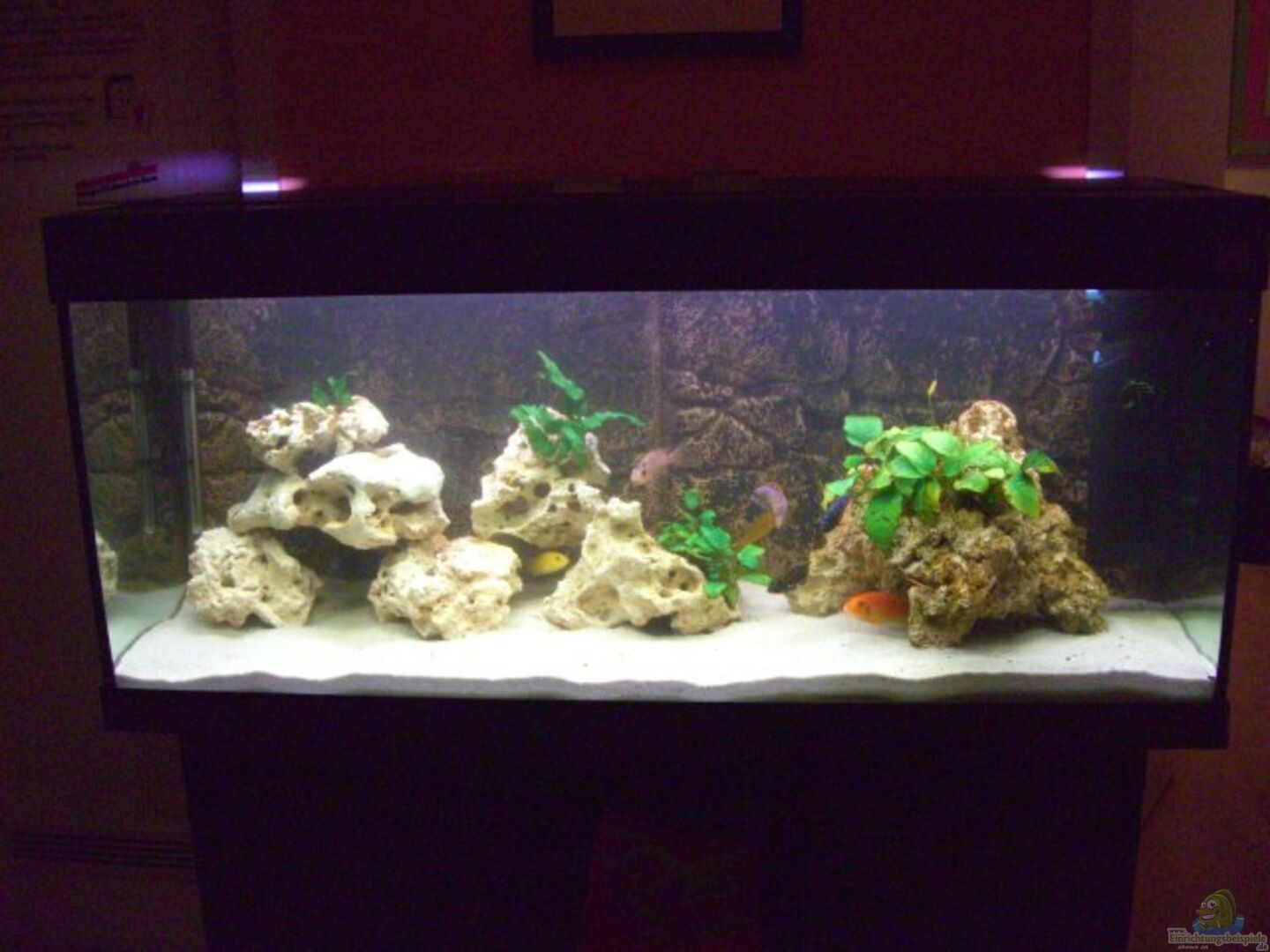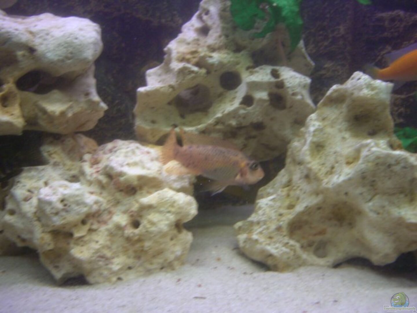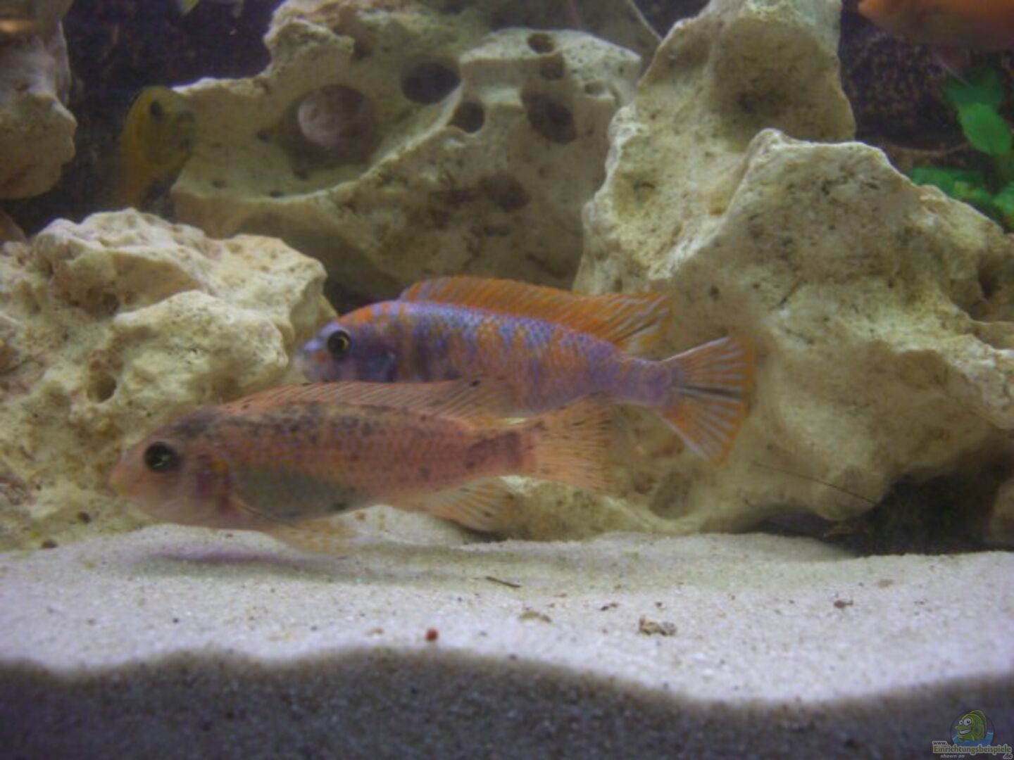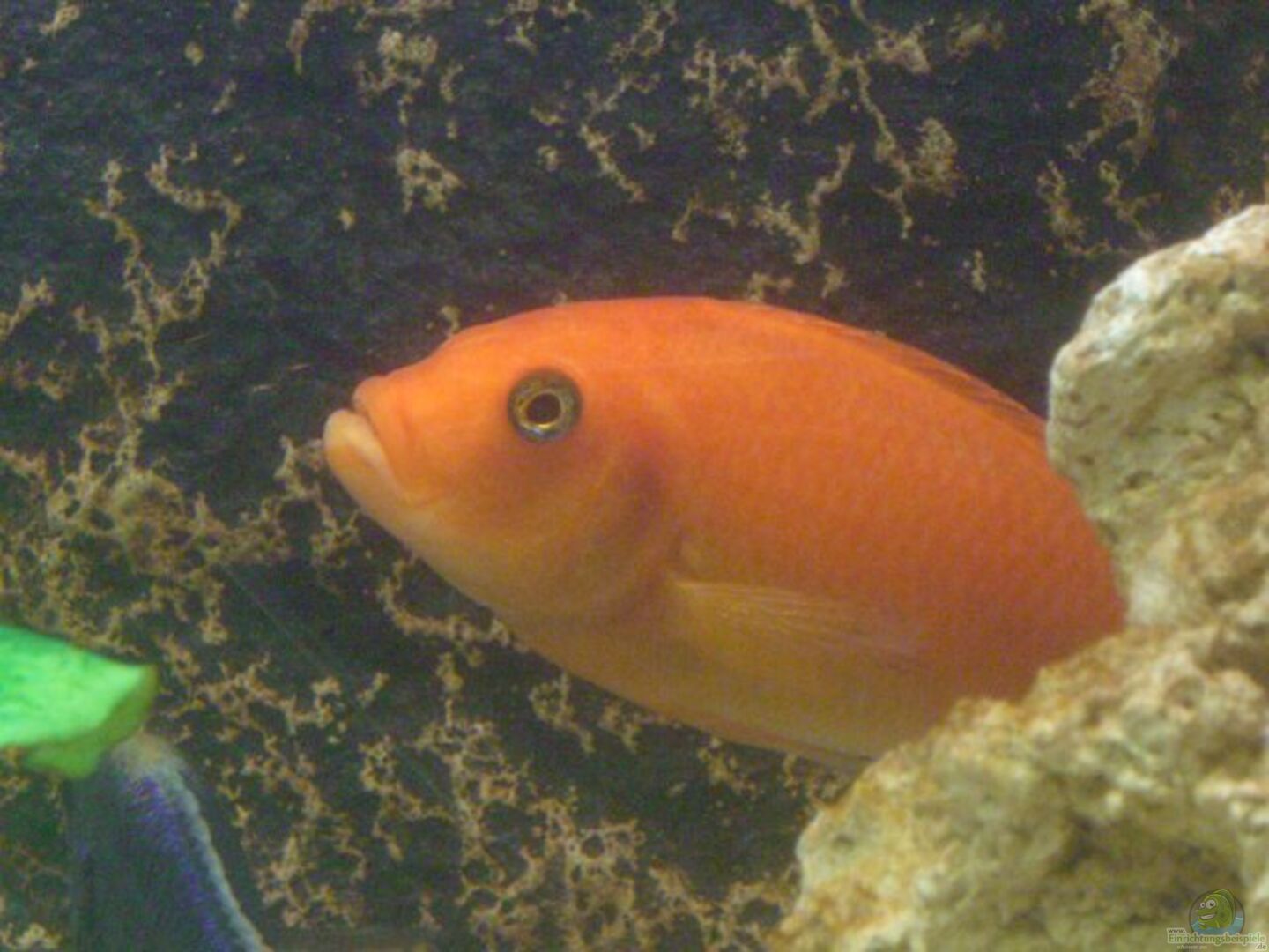 du weisst nich ganz welche Fische du im Becken hast also, der ganz blaue ist ein Sciaenochromis fryeri, die beiden mit den Flecken solten Labeotropheus fuelleborni sein, bei dem Orangen fisch handelt es sich um ein metriaclima estherae weibchen. so ich hoffe ich konnte helfen