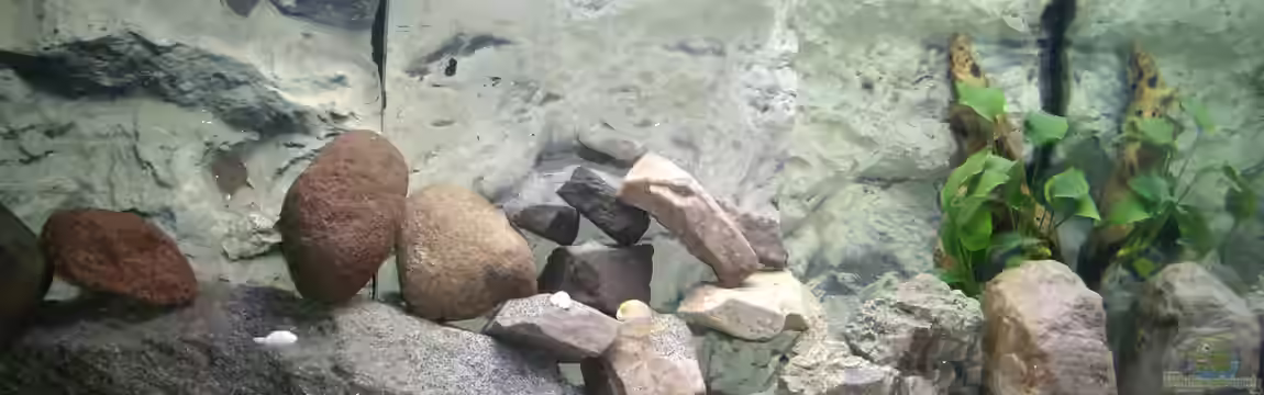 Die Steine sind verklebt so das sie nicht zusammen fallen können, desweiteren ist hiter der Rückwand noch genügend Platz für versteck möglichkeiten. Wenn die Barsche die endgrö?e erreicht haben werde ich die Steingrö?e anpassen.