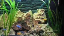 Ursprünglich wollte ich auch nur drei Arten jeweils 1/3 einsetzten, aber beim Kauf vor 6 Wochen hat mich der Händler nach der Grösse meines Beckens gefragt und meinte, ich sollte mindestens ein Verhälniss 1 zu 4 wählen, besser wäre jedoch noch eine 4. Art, damit sich die Aggressionen besser verteilen. Bisher scheint er auch nicht Unrecht zu haben. Ich habe mich vor dem Kauf sehr mit meiner Auswahl auseinandergesetzt, und habe eben auch gelesen, das die M. estherae eher agressiv sein sollen, und wollte sie daher auch nicht in meinem Becken haben. Es hat sich jedoch herausgestellt, das es eher die M. callainos sind, die ein bischen rumjagen. Allerdings auch nur der Bock und der auch nur ein best. Tier. Vieleicht ist das ja auch ein Bock.