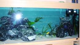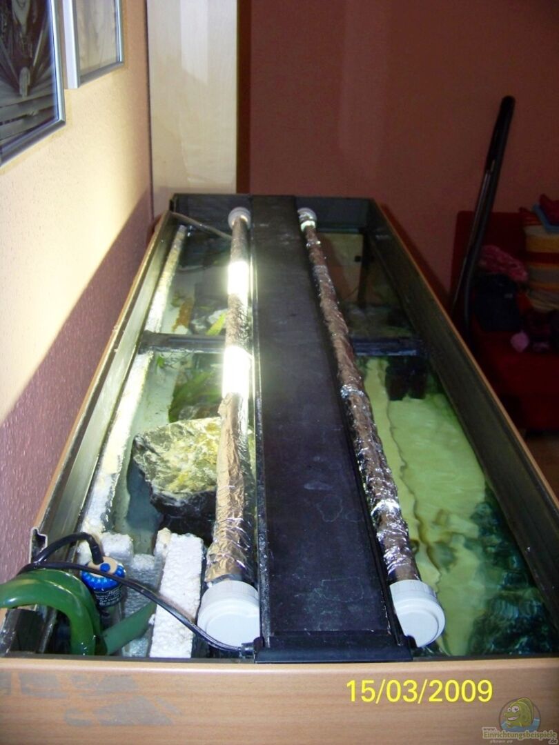 Da man bei der Juwelleuchte nicht einzeln schalten kann, habe ich die vordere Röhre komplett abgedunkelt um mehr Schatten ins AQ zu bekommen.