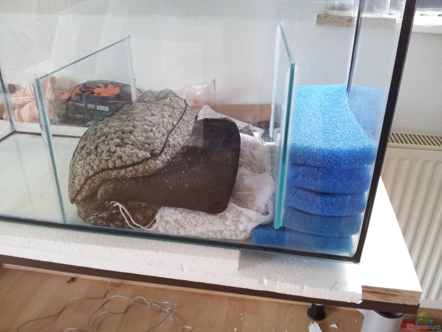 Habe heute meinen DIY Wet/Dry Filter ausprobiert und bin zu dem Entschlu?? gekommen vorerst nur mit Filterbecken zu fahren :D ... deshalb wurden die Bioballs mit ins Filterbecken gepackt und die zweite Pumpe ebenfalls.