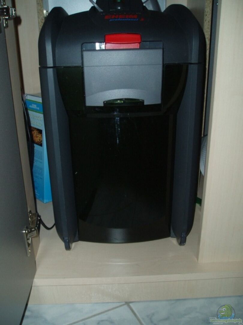 Eheim 2080 mit 1700l/h 1 grobe Filter matte (blau), 1 feine Filterwatte (wei??), 1 Korb ist mit Eheim Mech bestückt und die zwei anderen Körbe mit Eheim Substrat pro
