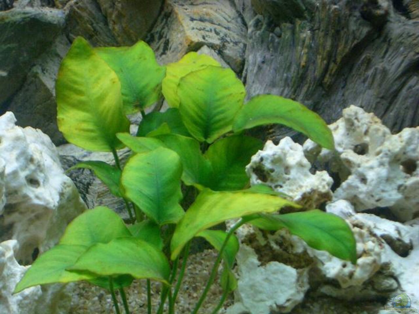 Deine Anubias gehören nicht in den Kies/Sand. Stecke diese einfach zwischen die Steinaufbauten, wo Sie dann langsam festwachsen. Die Blätter werden warscheinlich gelb, wiel die Wurzeln anfangen zu faulen. Das gleiche wird wohl mit der Crinum geschehen sein. Die Knolle darf nur zu 1/3 mit Sand bedeckt werden.