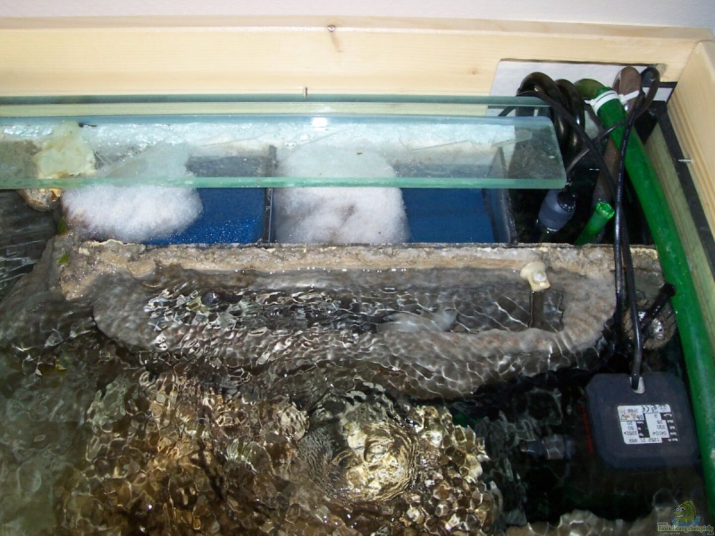 -Eingeklebter4-Kammern-Innenfilter 50x12x58cm ~ 35 Liter, betrieben mit Hydor pico und JBL 250 , insgesamt 1820 l/h und 20 Watt.