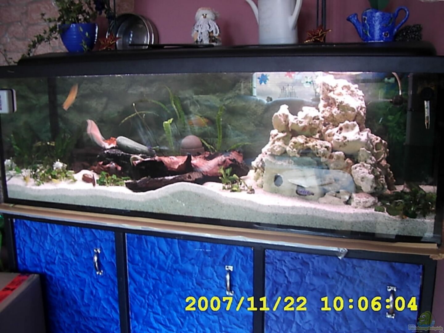 schliesse mich der aussage von jörn an. wurzel raus, gehört in kein malawibecken, mehr steine, besser was natürlicheres als lochstein und vor allem viel mehr. besatz optimieren, denn der pass überhaupt nicht zusammen.