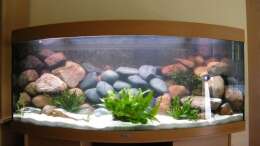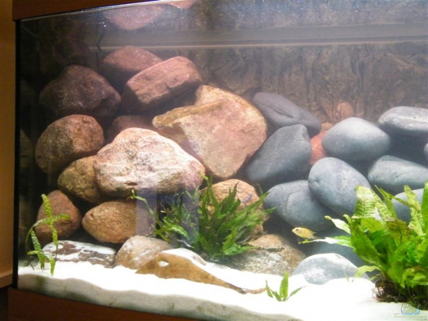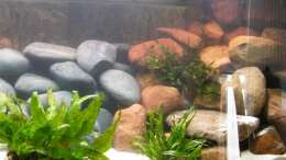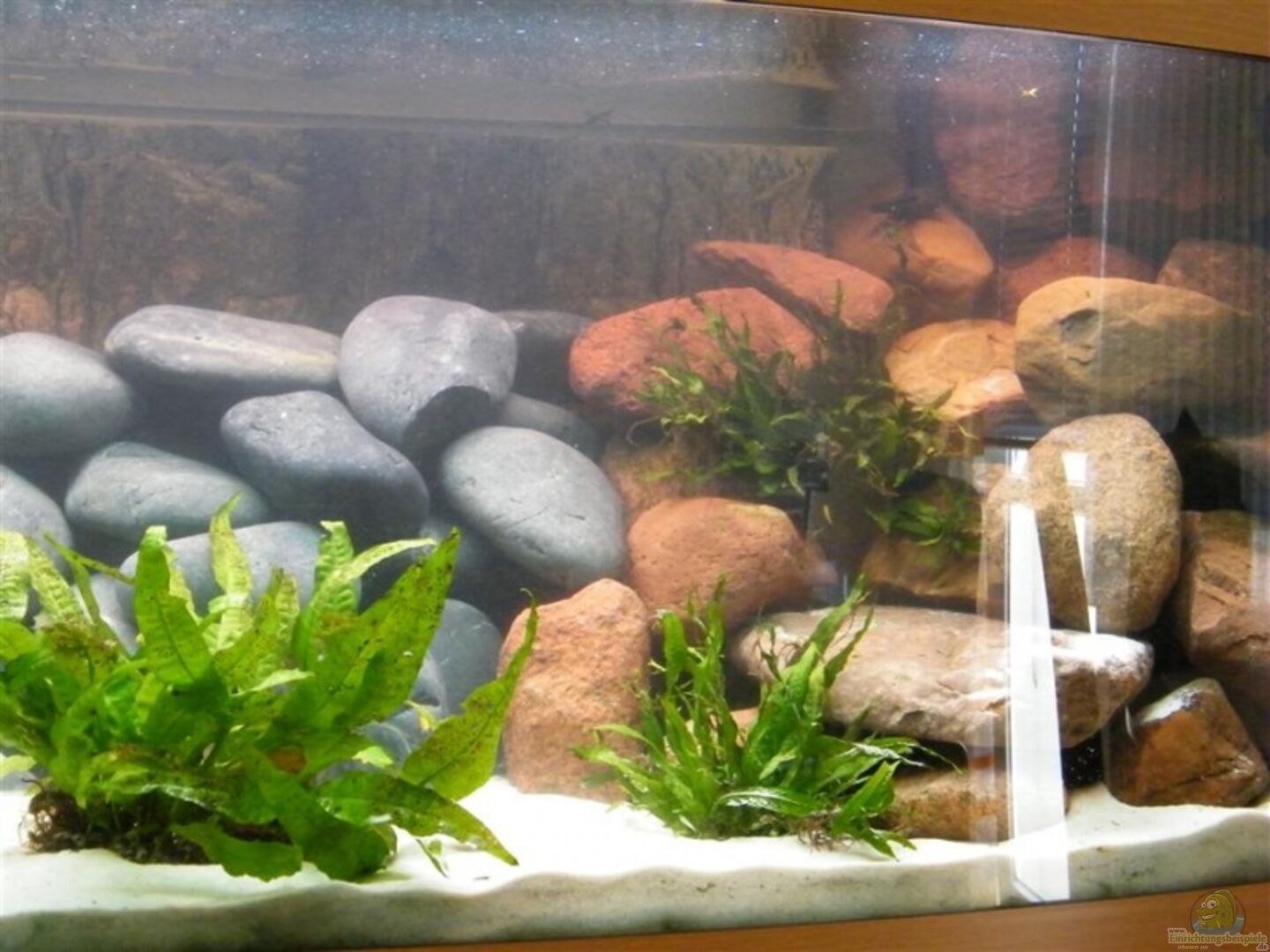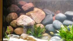 So, zu Deinem Becken will ich auch mal was schreiben: Die Anordnung und Menge Deiner Steine gefällt mir sehr gut, wenn ich auch den Kontrast der verschiedenen Steinsorten nicht so toll finde, aber das ist Geschmacksache. Ich selbst habe Lochgestein mit Kiesel gemischt - ist ja auch nicht jedermans Sache. Ein wenig muss der Javafarn vorne in der Mitte noch wachsen, um eine tolle Reviergrenze darzustellen. Wenn dann erst mal Algen eingezogen sind, sicher ein toller Anblick.