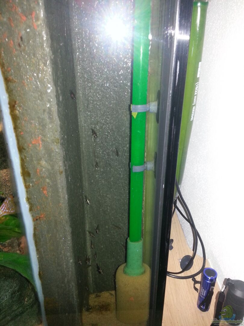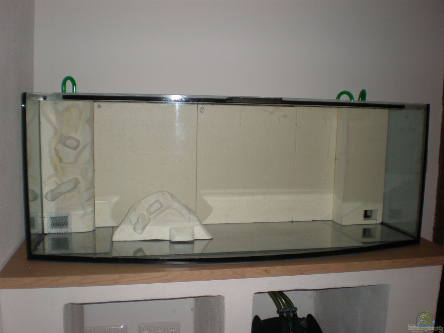 Selbstgebaute Rückwand aus Styrodur, mit 2 Lagen Zement, 1 Lage Fliesenfugenfarbe (Basalt) und einer Lage Aquarienepoxidharz versiegelt!