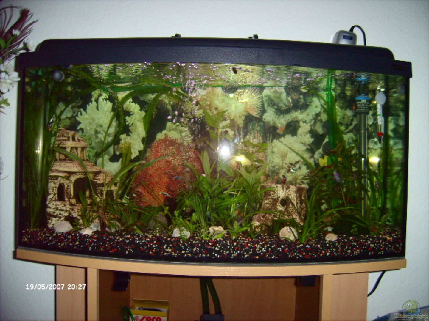 Was deine Wasserburg anbelangt, gehört meiner persönlichen Meinung nach, nicht in in ein Aqua(sieht unnatürlich aus) und ein paar Pflanzen mehr könnten auch nicht schaden und dem Pflanzenwuchs würden eine Co² Düngung gut tun, was die Belüftung fürs Becken angeht, in einem Becken mit gutem Pflanzenwuchs und vernünftigen Besatz nicht notwendig.