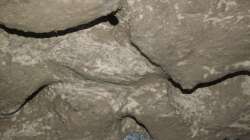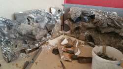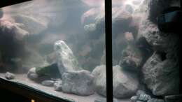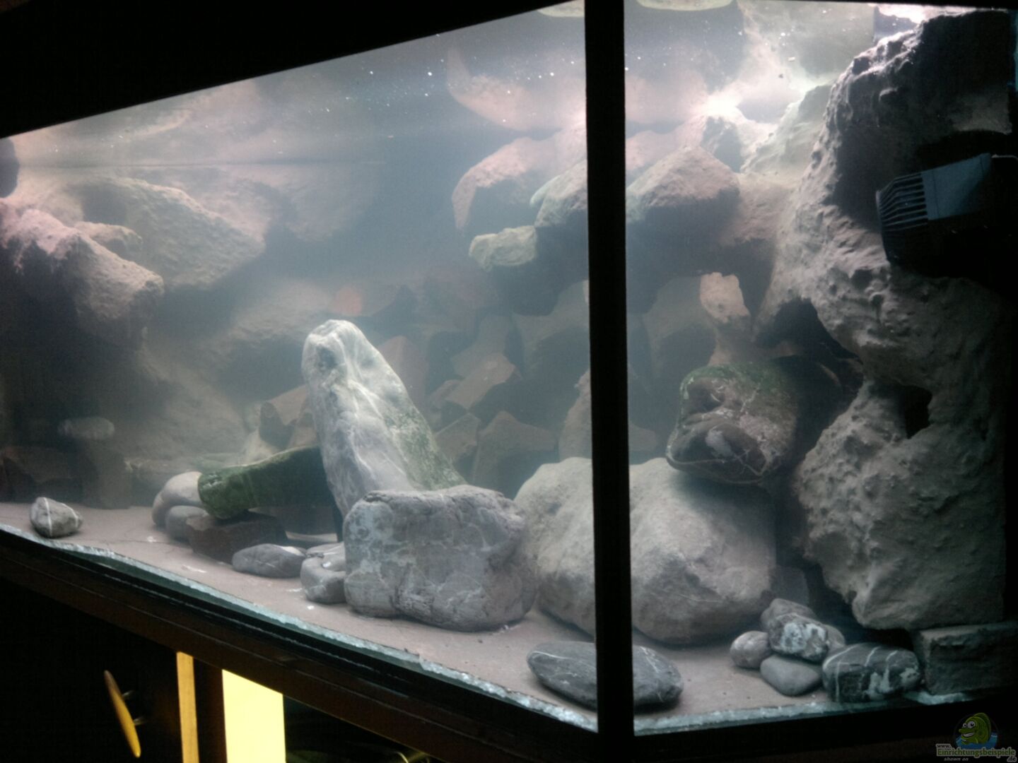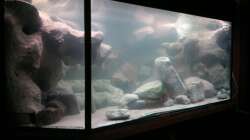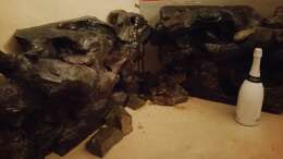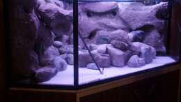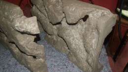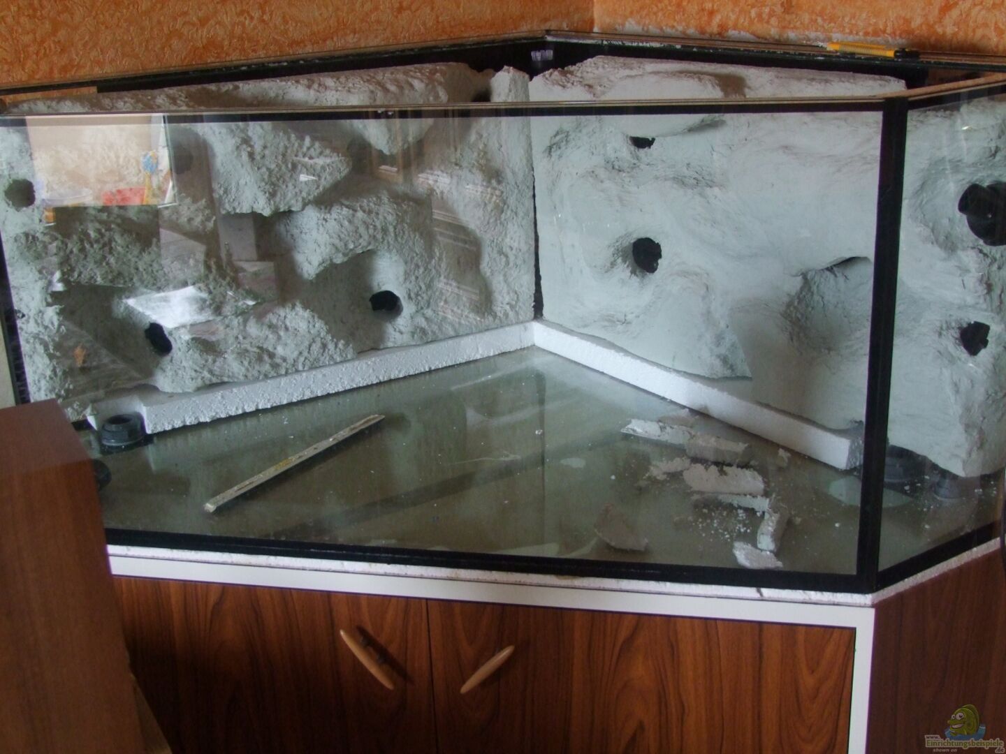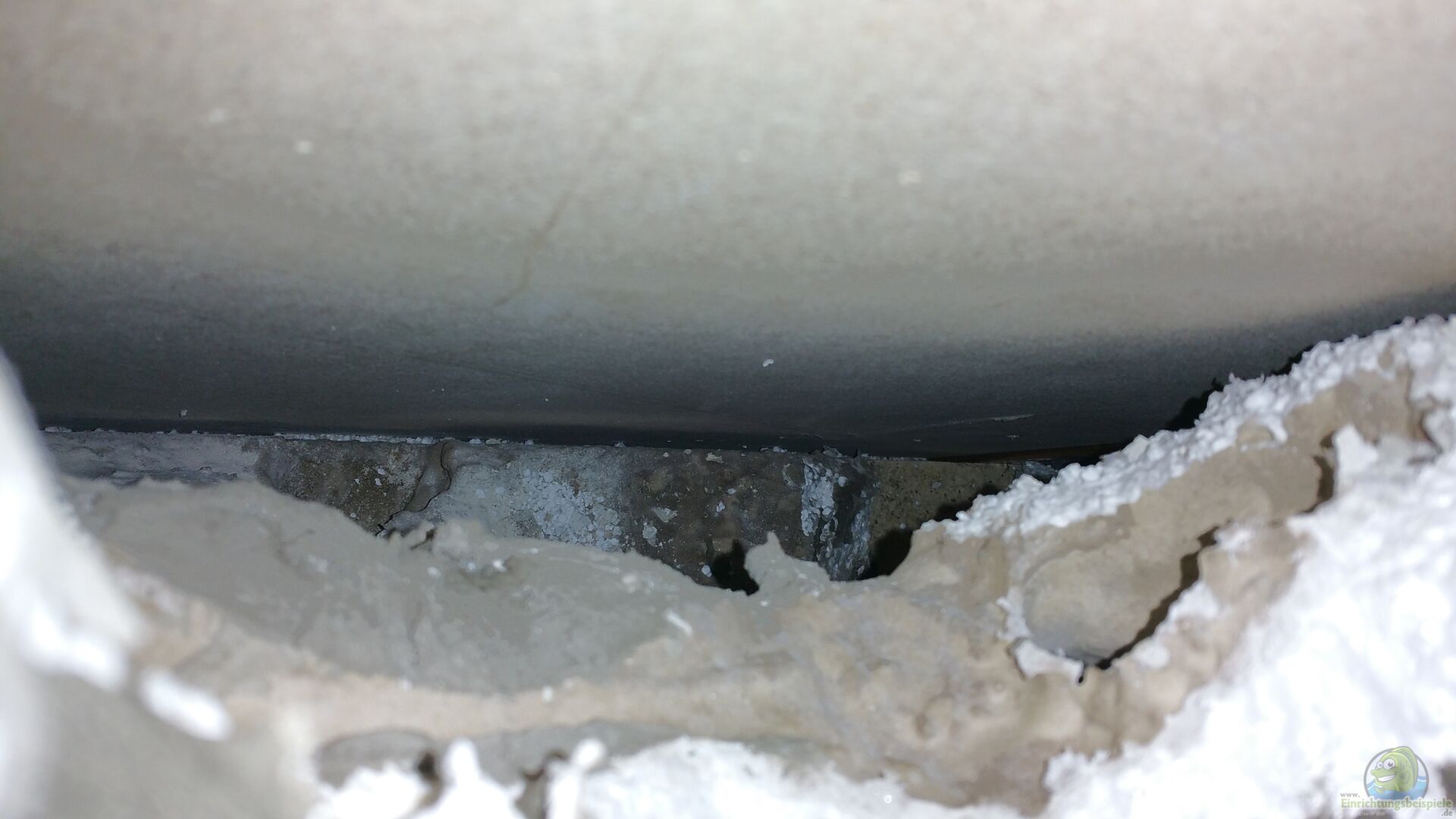 Hinterschwimmbare Rückwand aus Styropor 1, 20x0, 60x0, 14m, Eigenbau mit Höhleneingängen und Felsvorsprüngen. 10mm Styroporplatte zum Schutz der Bodenplatte.