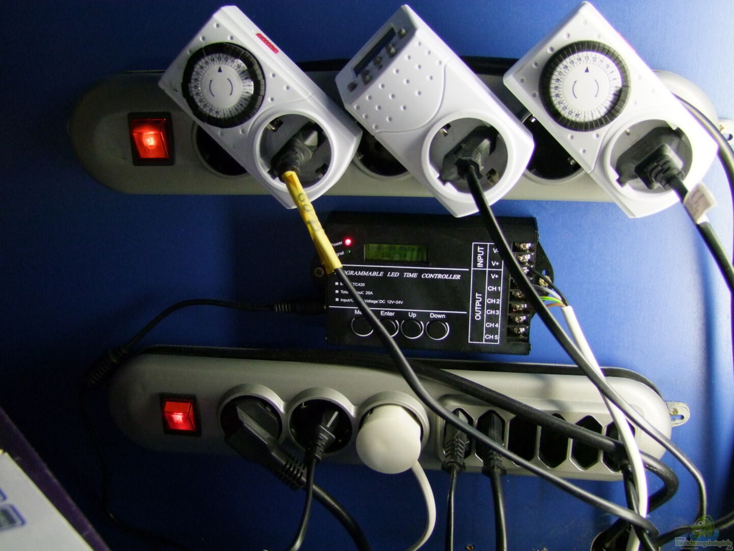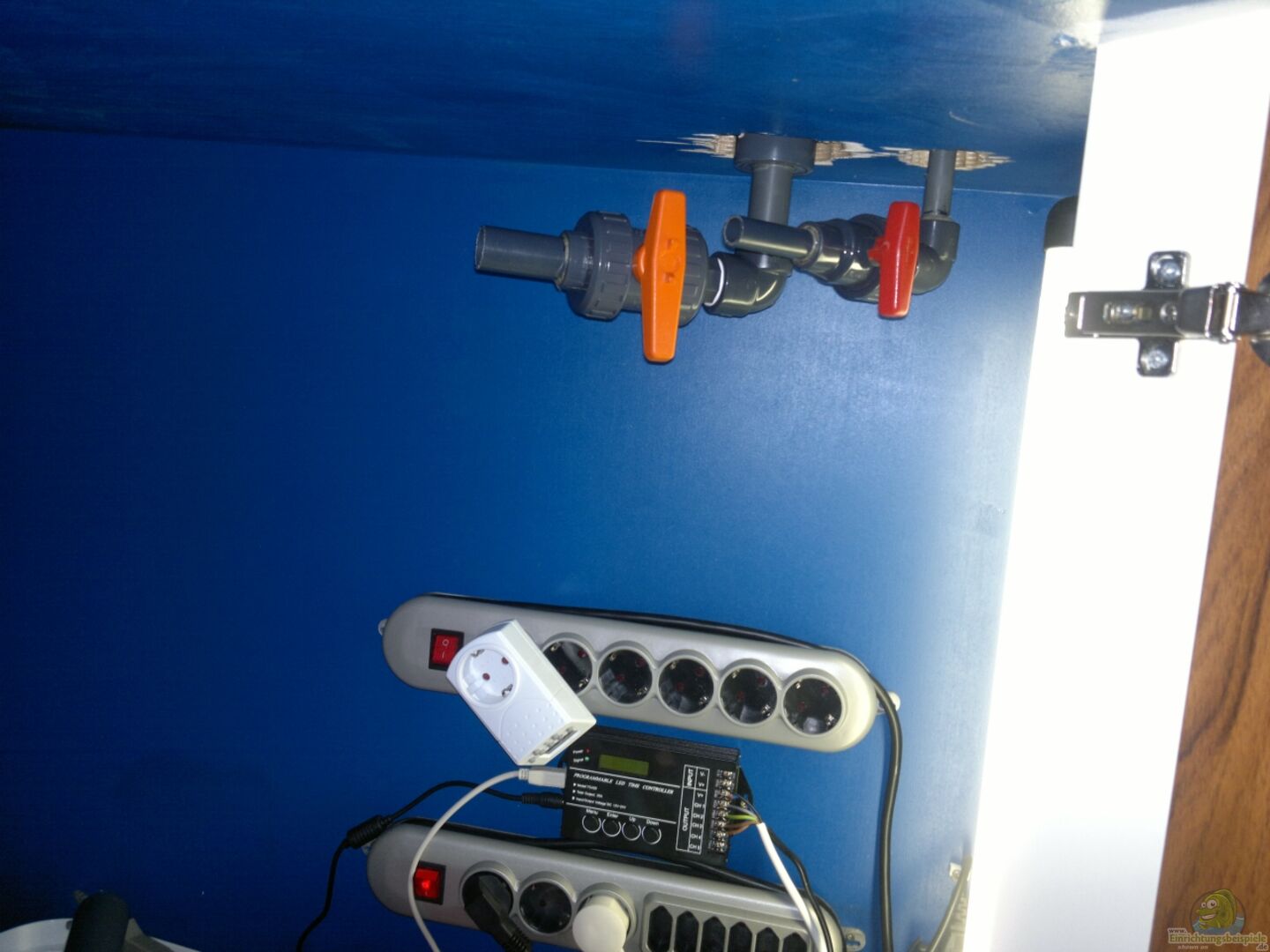 Strömungspumpe Tunze 6015 hinter der Rückwand , zeitweise über Schaltuhr in Betrieb.