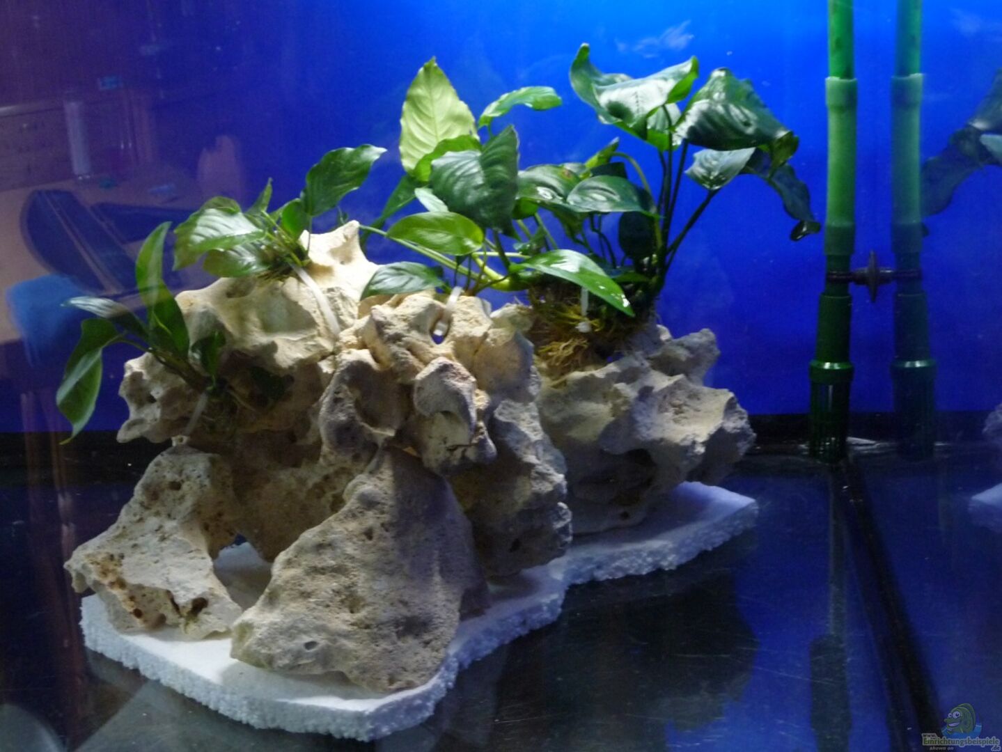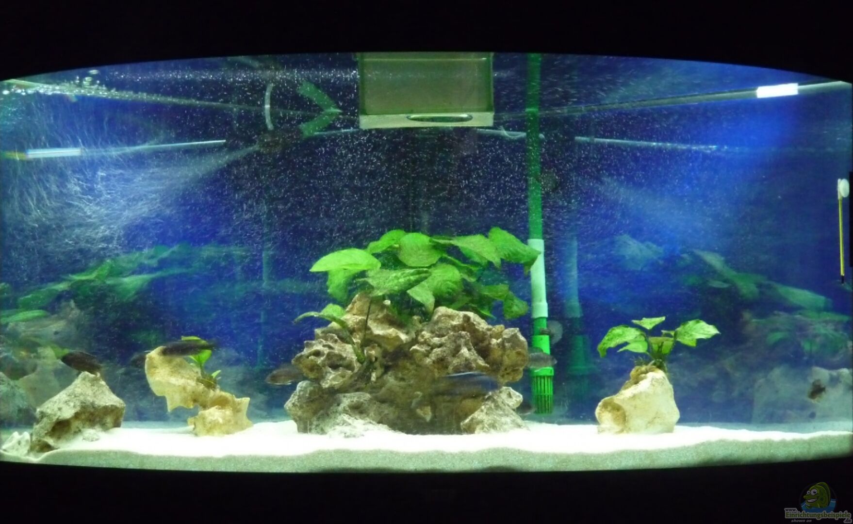 Auch wirkt dein Becken ziemlich hell. Denke eine Röhre mit blauer Folie umwickelt und den hellen Bodengrund noch mit schwarzen Sand mischen würde das ganze gleich mal atmosphärischer machen?
