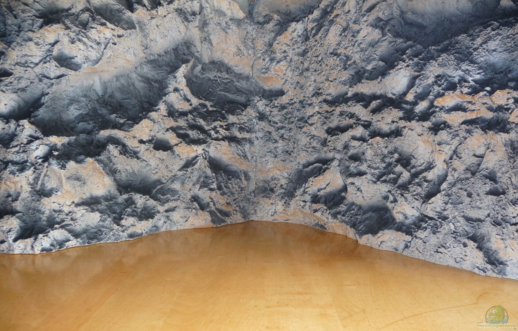 Eine Sonderanfertigung für das Trigon mit einer Technikecke von Steinzeit Design im Design Rock II. Die 3D-Vorsprünge ragen bis zu 10cm in das Becken, diese sehen optisch wie frisch gebrochener Stein aus. Die Rückwand wurde mit 2 Durchflussgittern mit je einem Innendurchmesser von 44mm versehen, für die Wasserzirkulation.