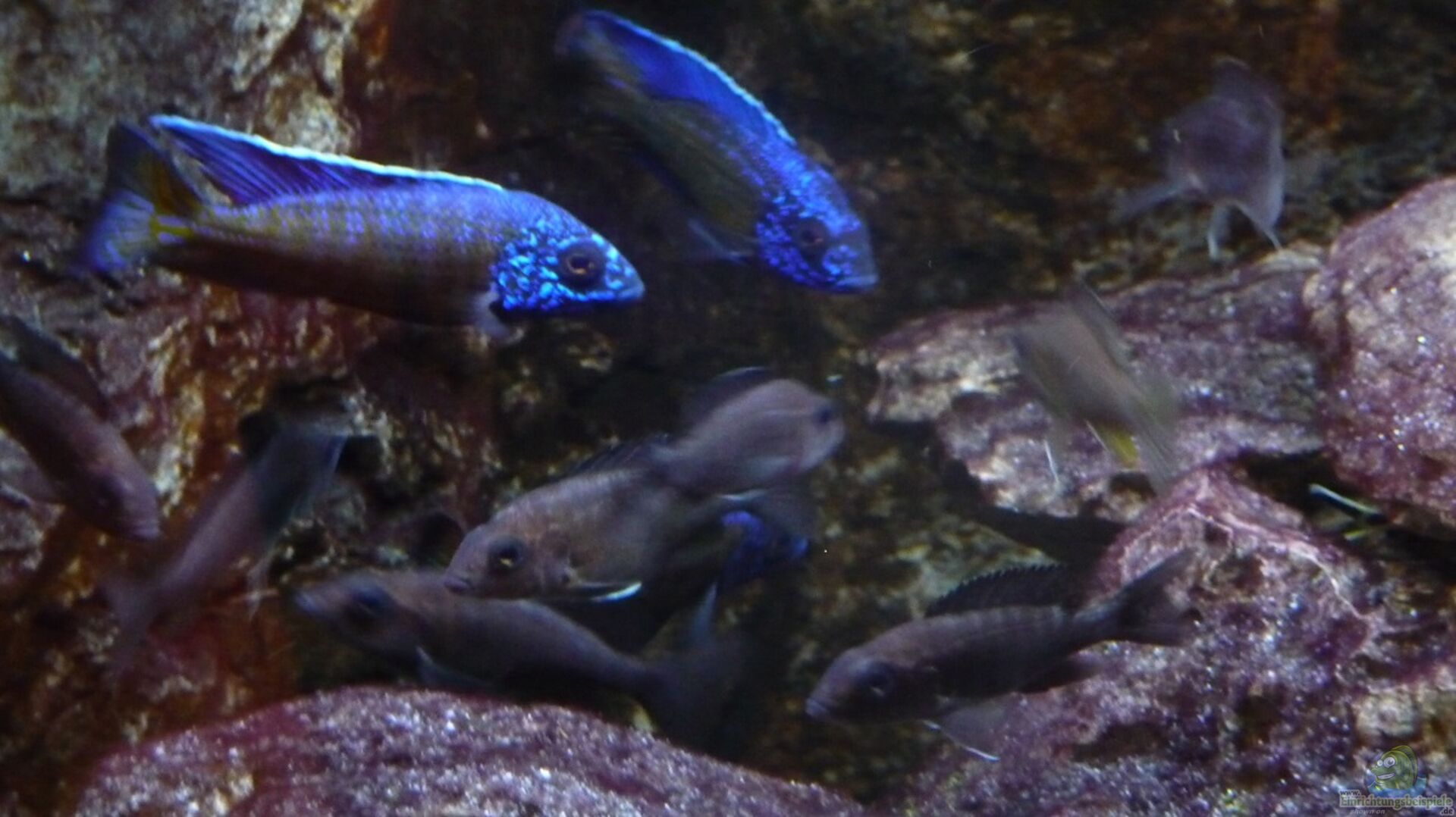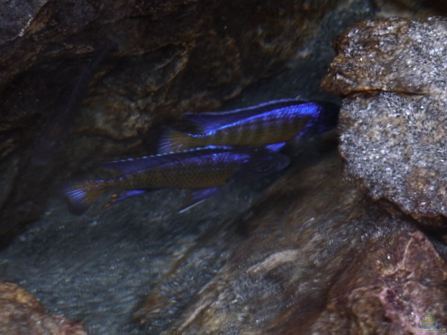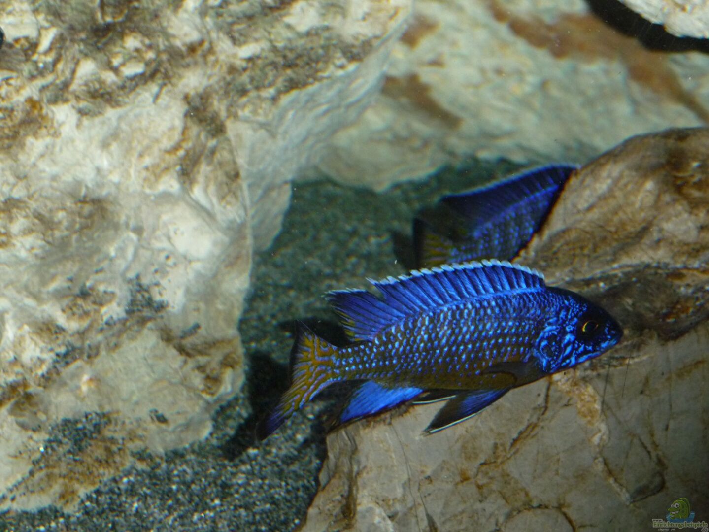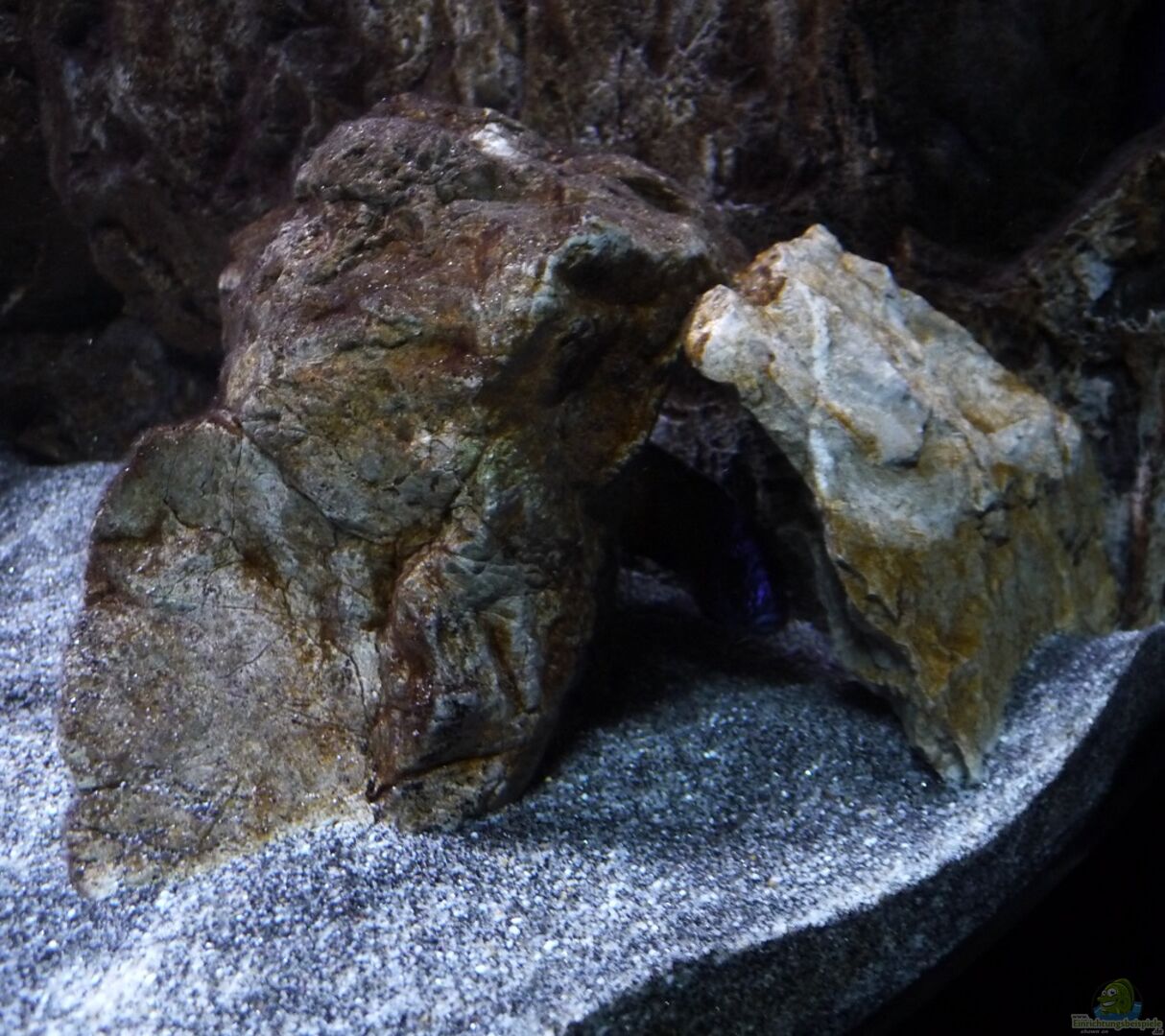 Im Malawisee benützen auch mehrere Aulonocara Surtgranti Ngara Böcke grö??ere Höhlen miteinander ohne dass es zu Problemen kommt. Im Aquarium könnte die Situation vielleicht anders aussehen. Aber aus Platzmangel versuche ich diese Lösung, da ich alle geplanten Aufbauten nicht untergebracht habe.