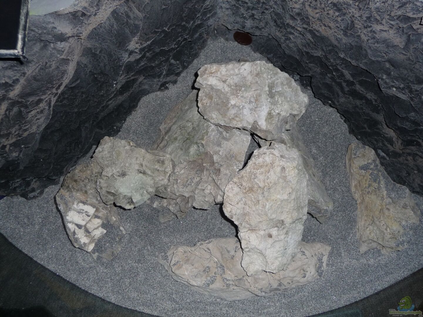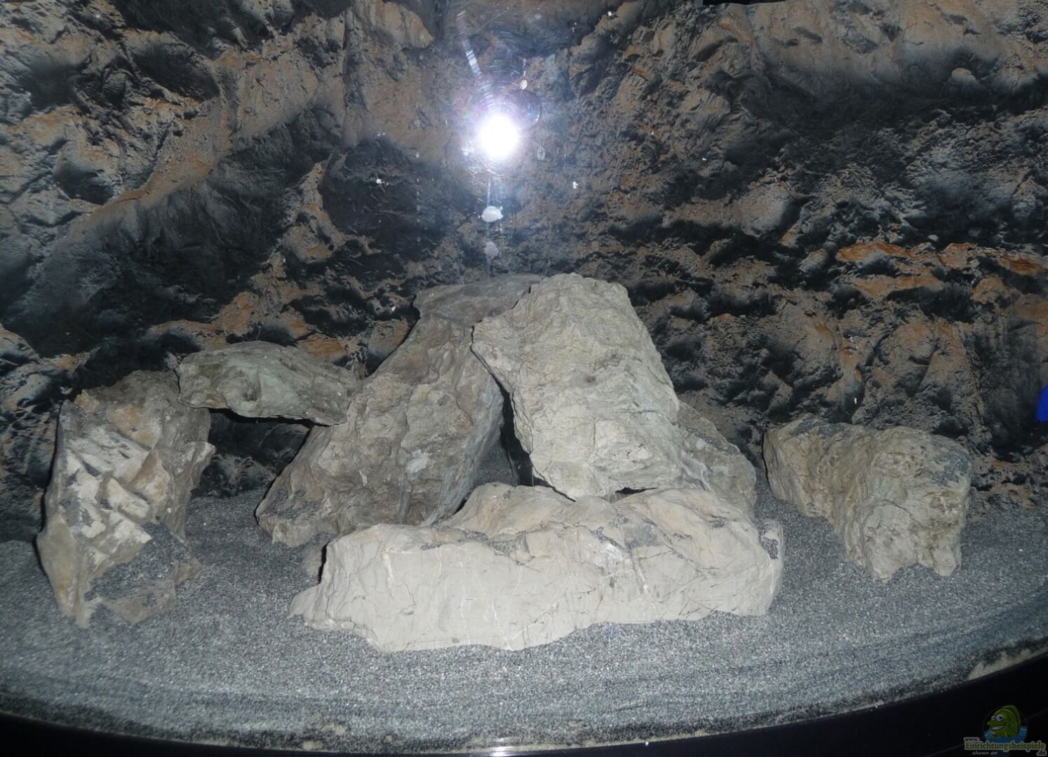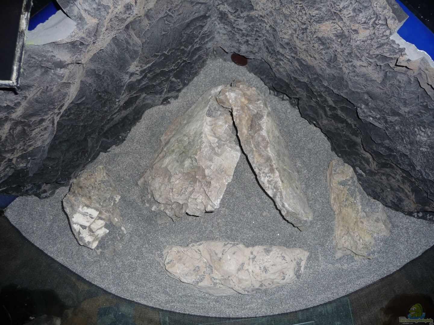Aus 63kg Ybbstaler Kalkgestein versuchte ich eine ??bergangszone mit schmalen Sandstreifen und einer gro??en Höhle zu gestalten.