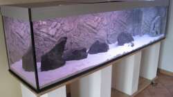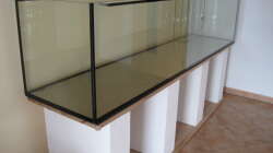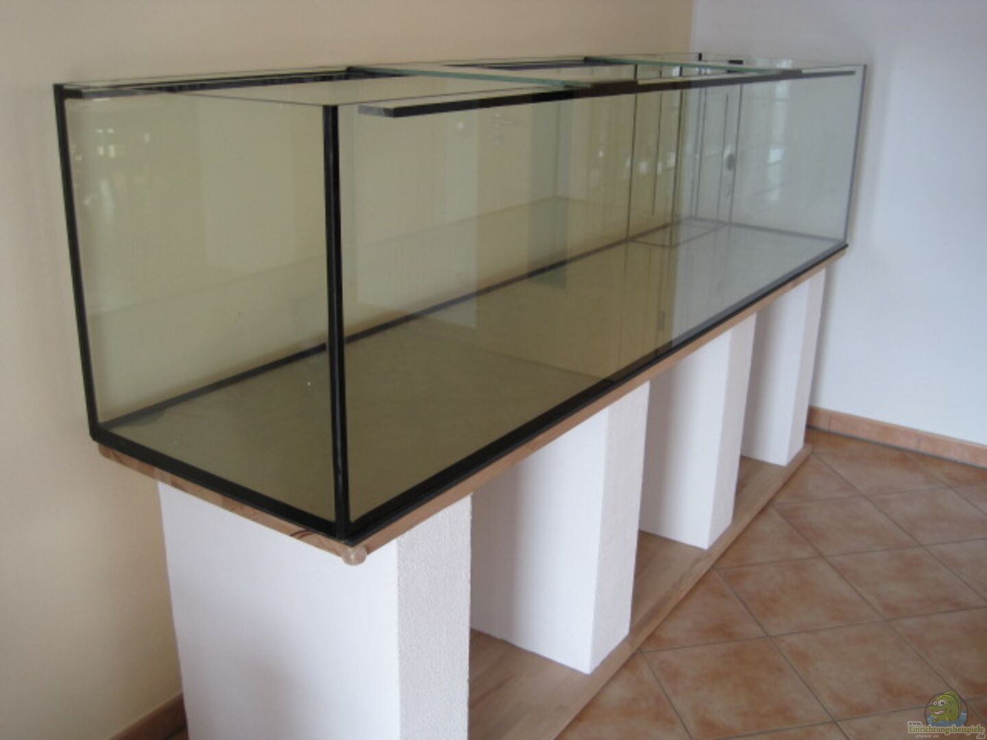 Becken steht auf einer 2, 51 mtr. langen und 60 cm tiefen Arbeitsplatte aus Buche Leimholz (28 mm stark). Zwischen Becken und Arbeitsplatte befindet sich eine Aquarienunterlage aus Schaumstoff.
