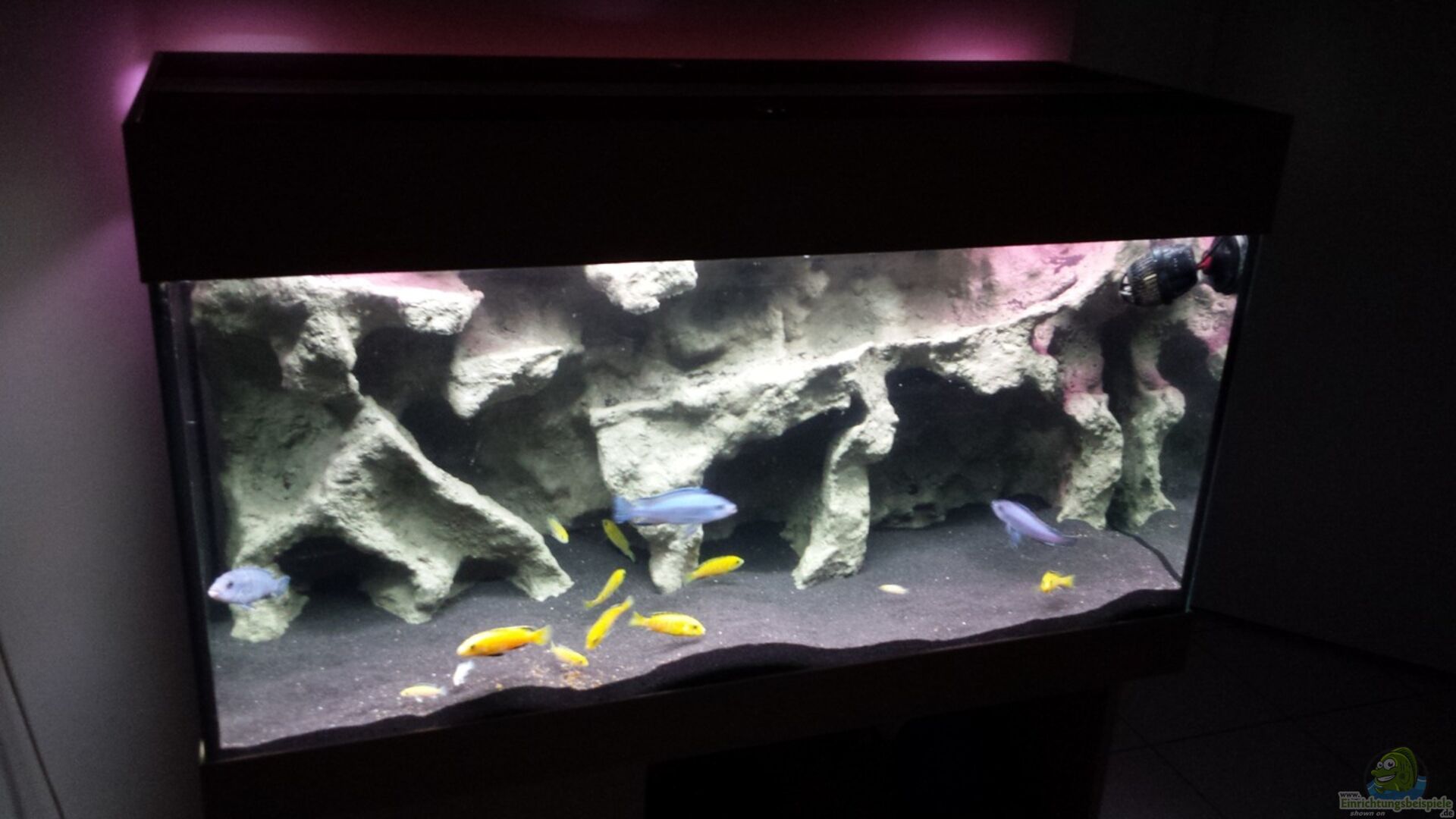 Das Becken wurde mit der neuen Rückwand grade neu aufgebaut. Es wird jetzt nach und nach weitere Einrichtung im Vordergrund hinzugefügt werden (Wurzeln, Steine, Pflanzen). Desweiteren wird an der Beleuchtung geschraubt (Viel dunkler und Blaustich). Die Fische fühlen sich aber offensichtlich jetzt schon viel wohler als mit der alten Einrichtung. :-) Vorher war es eher ein gro??er Steinhaufen. Sah auch nicht wirklich schön aus. Jetzt ist viel mehr Ruhe im Becken! Bessere Bilder und Updates folgen...