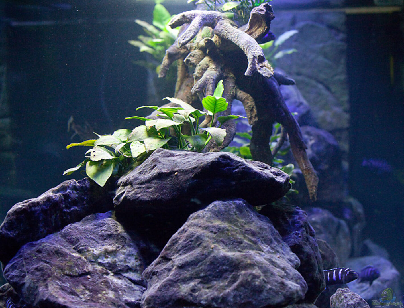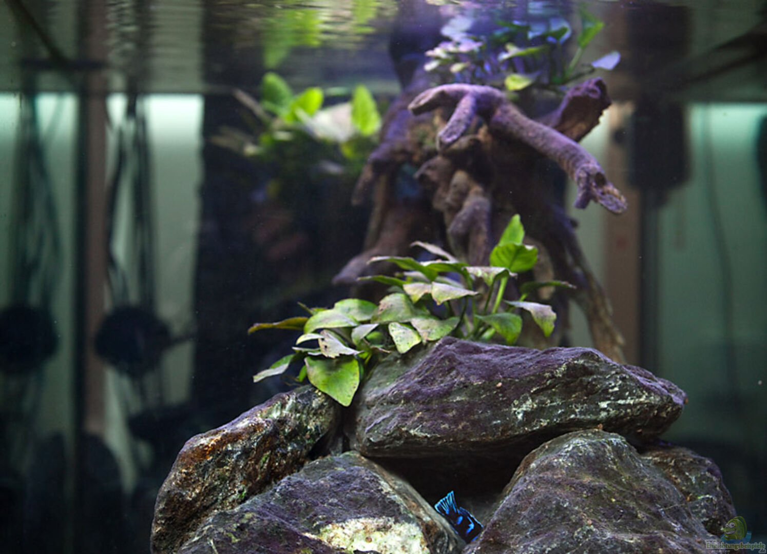 Die Anubias bieten hier den Tieren und vor allem dem Nachwuchs genügend Rückzugs- und Versteckmöglichkeiten.