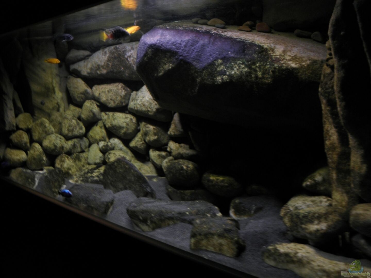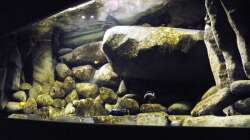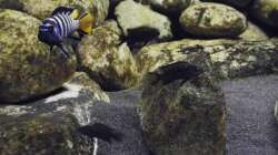 Für die Haltung im Aquarium braucht diese Art keine bis zur Wasseroberfläche reichenden Felsbarrieren. Wichtig ist einfach, dass für jeden Bock mindestens eine kleine Höhle zur Verfügung steht (sollten etwas entfernt voneinander liegen - innerartliche Aggression) und genügend Felsen verstreut herumliegen, um den Weibern und Junggesellen dazwischen Verstecke für die Nachtruhe zu bieten. Ebenfalls sollte viel freier Schwimmraum (Freiwasserzone) für die ???Schwarmbildung??? sichergestellt werden.