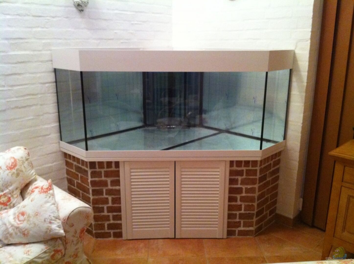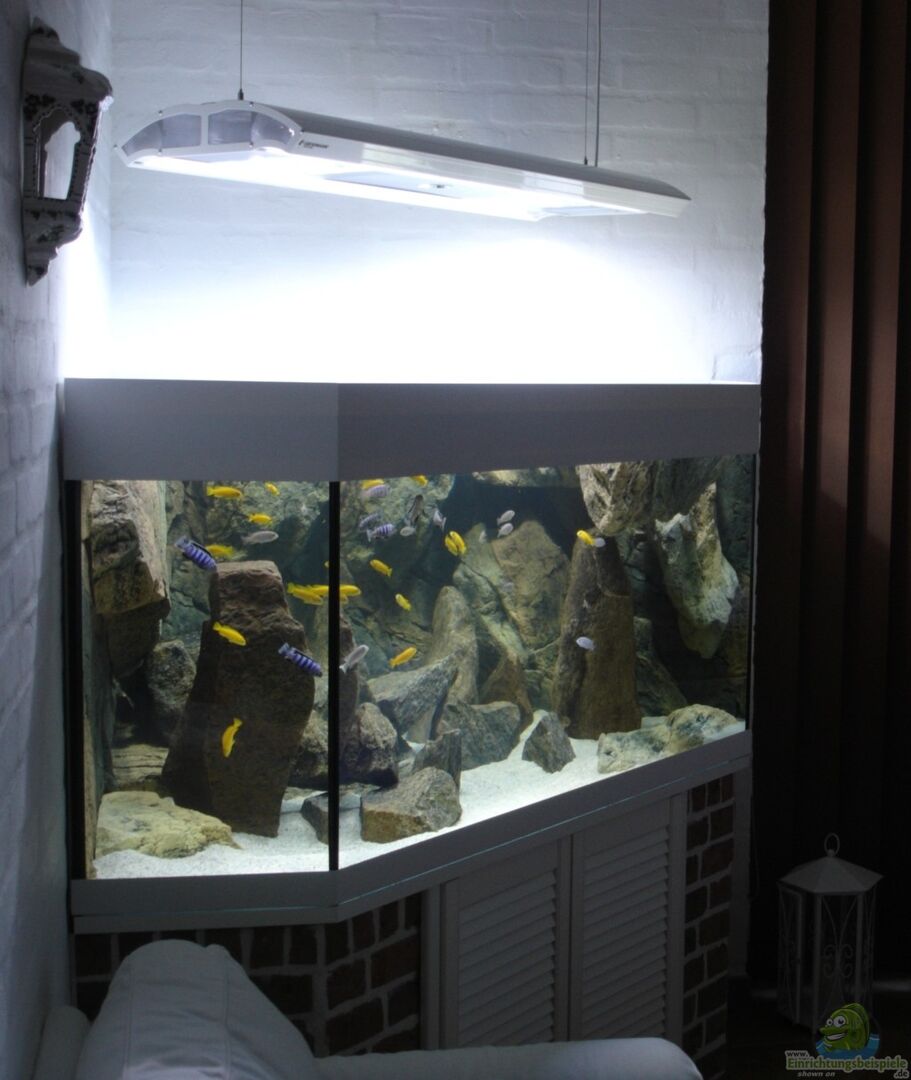 Das Aquarium und der Filter wurde bei Brilliant-Aquarium www.brillant-aquarium.de/ im Wulstklebeverfahren gefertigt. Front und Seitenscheiben bestehen aus Wei??glas. ??berlaufschacht in der Ecke mit zwei Kammern, wobei sich in der ersten Kammer die Bohrung für den erleichterten Wasserwechsel befindet. In der Schlammkammer (2. Kammer) befindet sich der Ein- ein Notablauf. Der Auslauf wird ebenfalls durch die 2. Kammer geführt.
