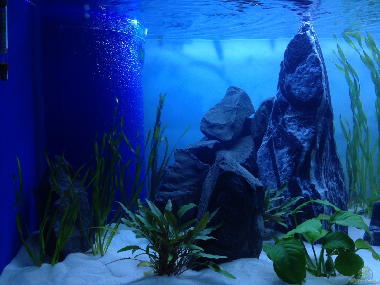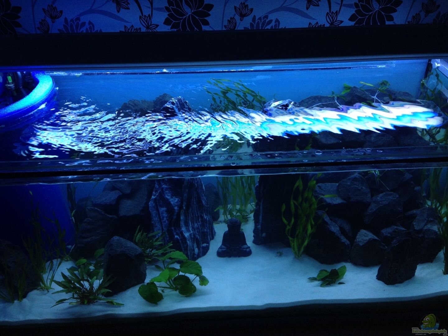 Da das Becken bei mir im Wohnzimmer steht und ich es Abends betrachten möchte habe ich die Zeitschaltuhr für die Beleuchtung erst ziemlich spät geschalten. Da das Becken doch in einiger Entfernung zum Sonnenlicht steht, hat das Becken wenig Sonnenlichteinfall und somit haben meine Bewohner zur normalen Tageszeit bei mir dann eben Verhältnisse wie sie sonst zum Sonnenaufgang herschen.