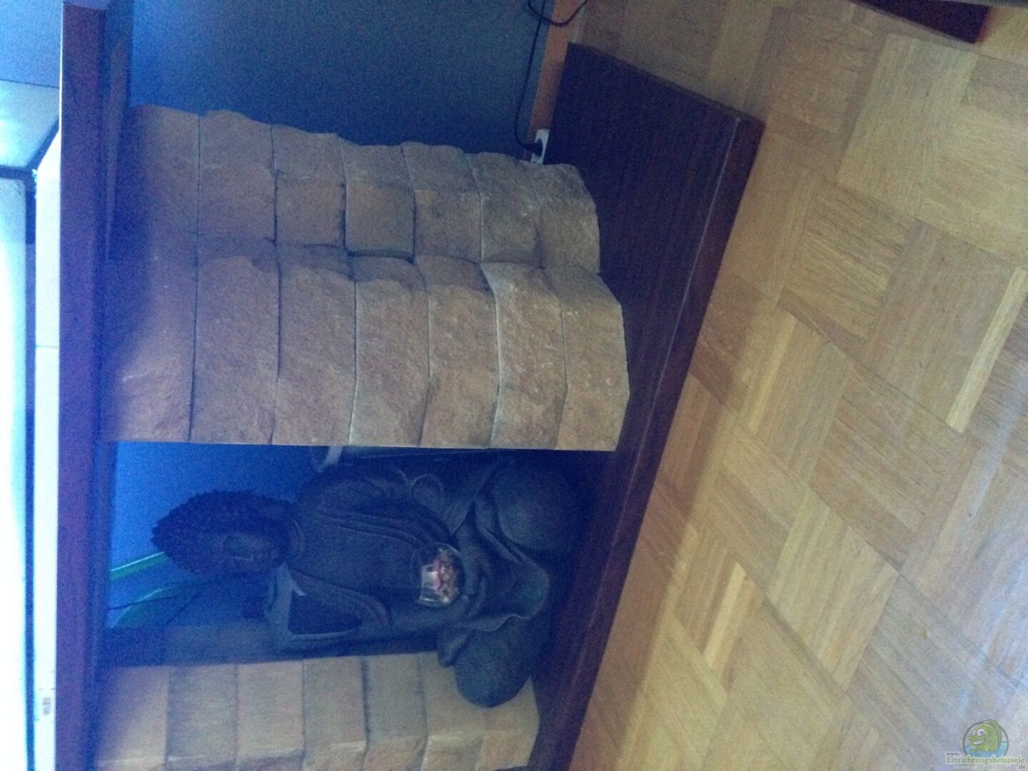 Zwischen Arbeitsplatte und Aquarium befindet sich eine 2cm dicke Styropormatte.