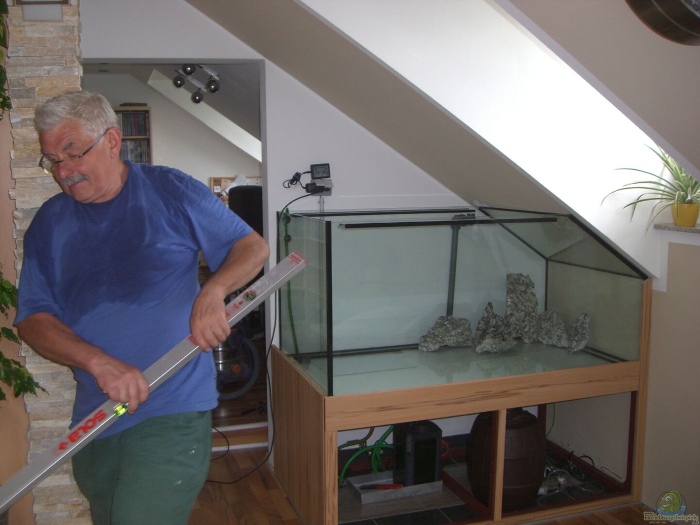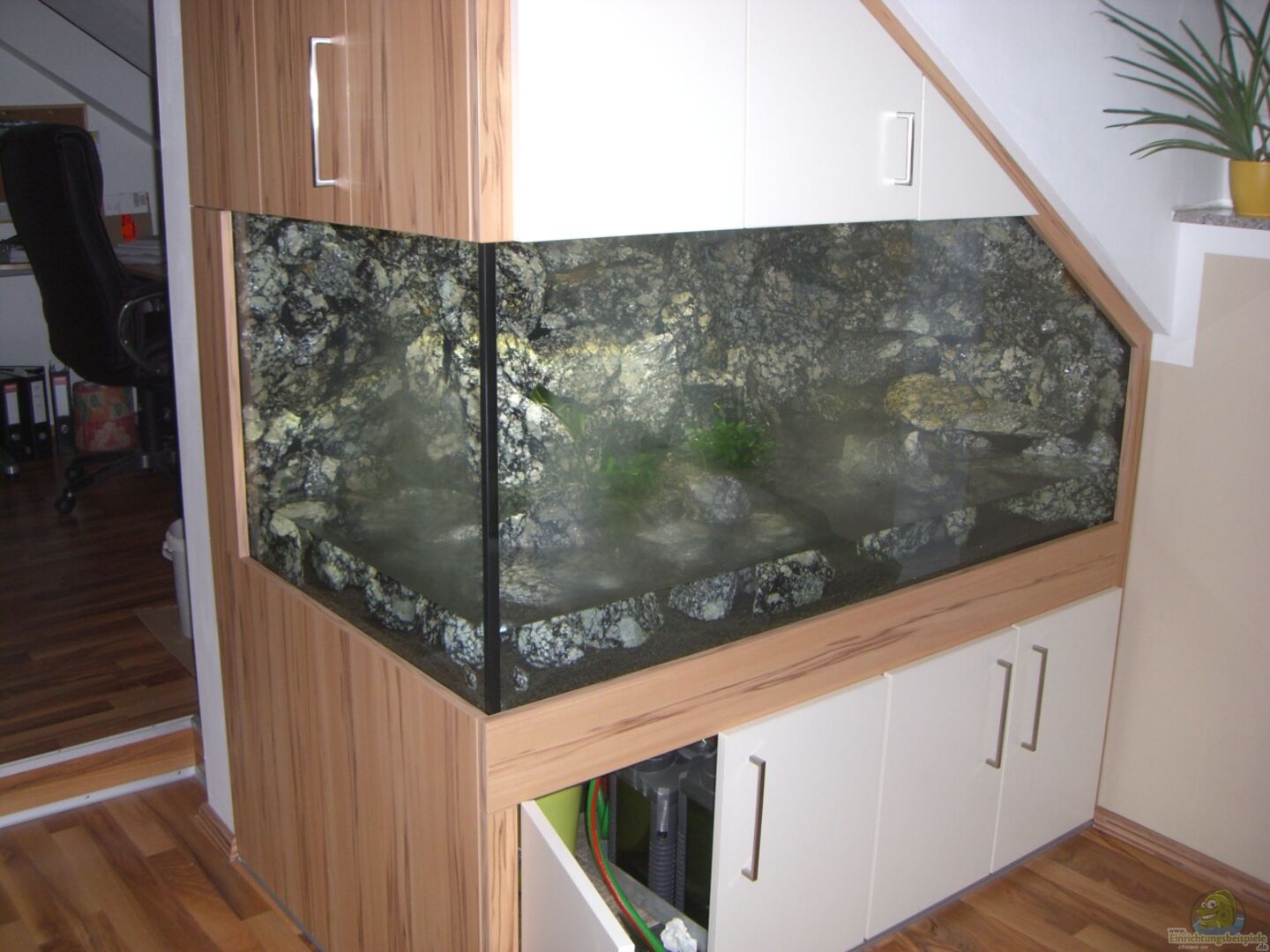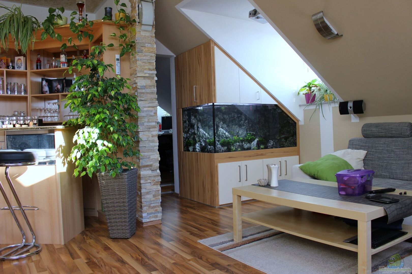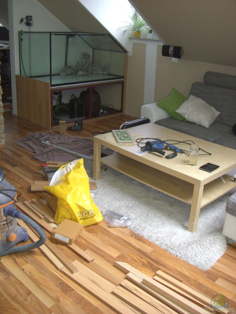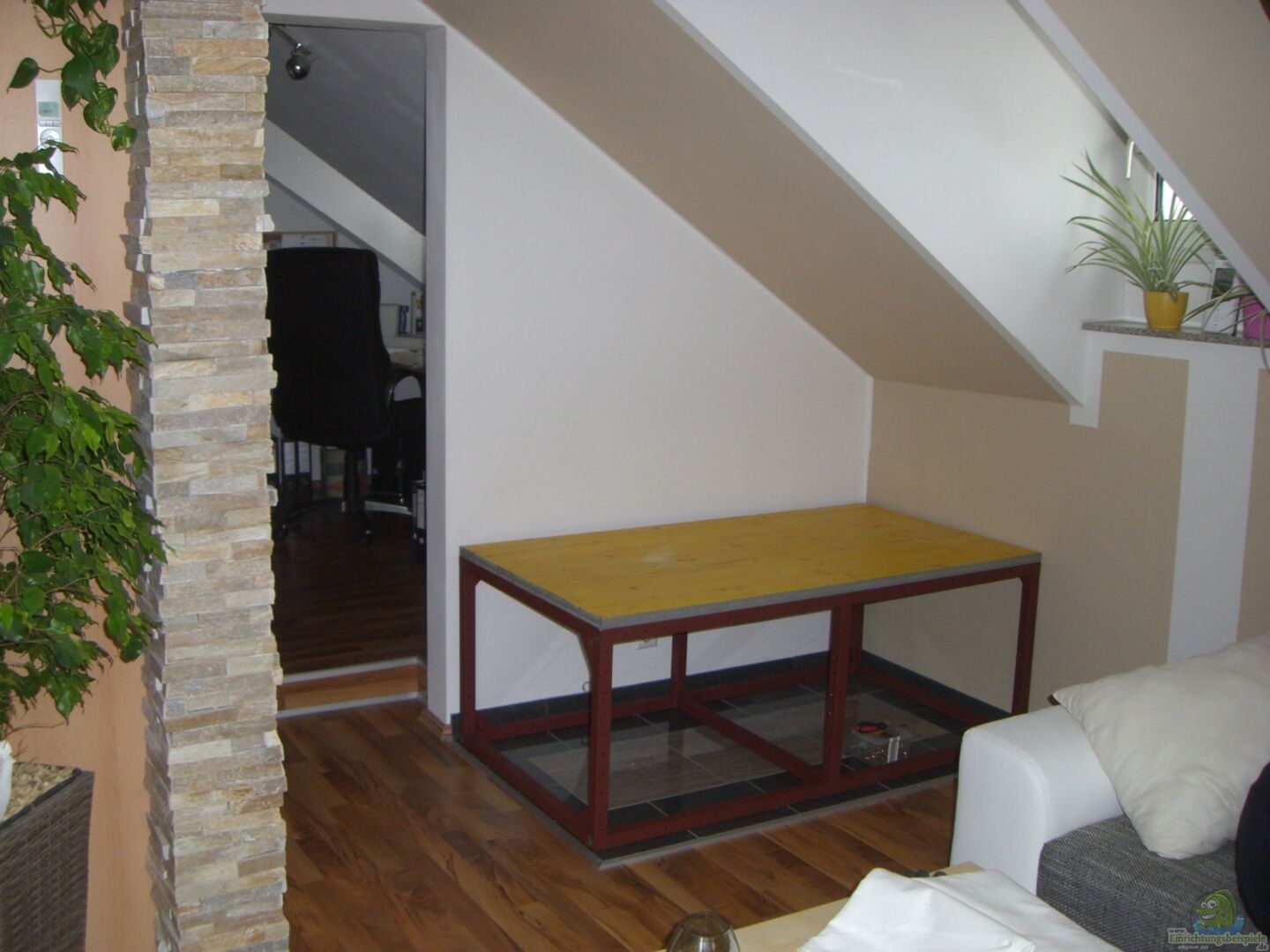 Ich wollte das Becken dort platzieren, wo ich mich am meisten Aufhalte, also Wohnzimmer und Essbereich, jedoch gibt es speziell in diesem Bereich die meisten Dachschrägen. Nach langem überlegen entschied ich mich das Aquarium einfach an eine Wand mit Dachschräge anzupassen. Das Becken sollte schön tief werden, um eine Menge Spielraum für Steinaufbauten zu haben.
