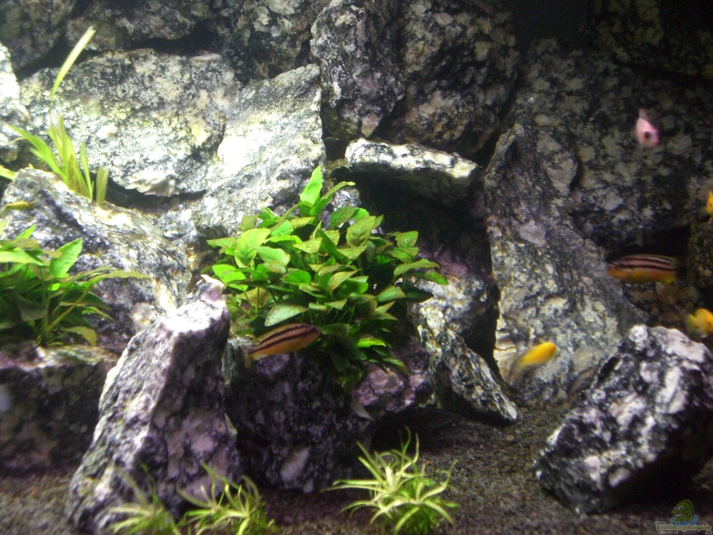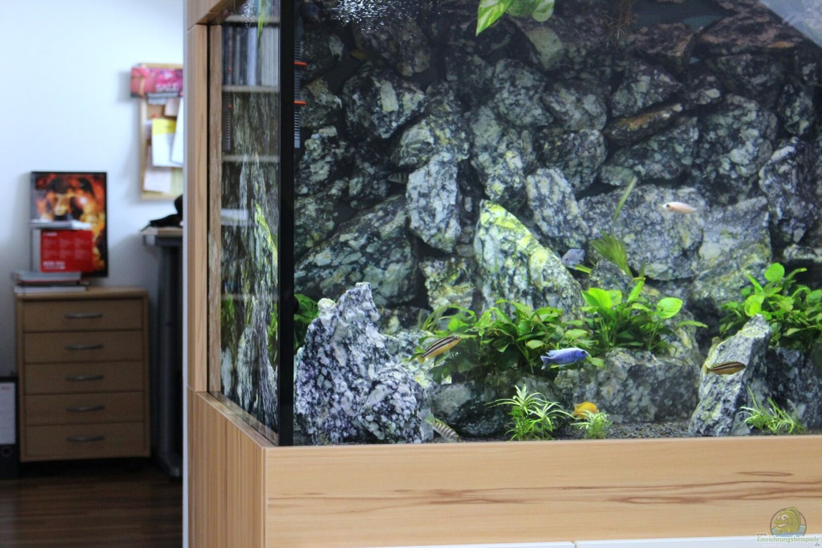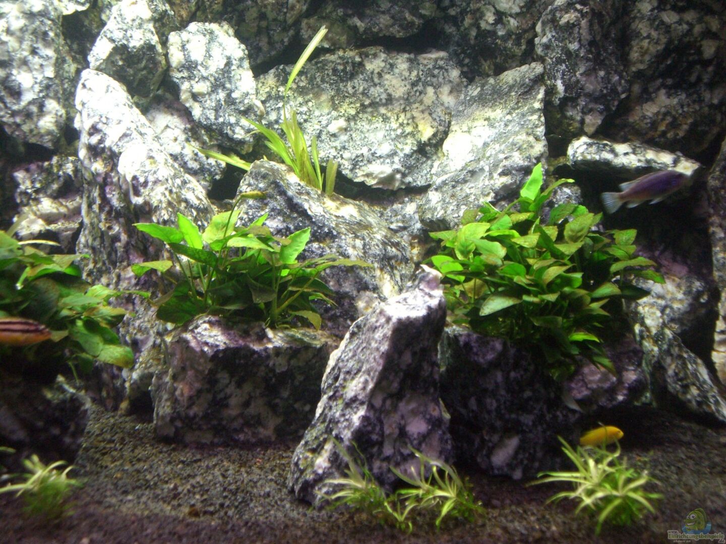 Die 3D Rückwand besteht aus ca. 200 kg echtem Granit. Da die Malawis in ihrer natürlichen Umgebung sehr viele Höhlen als Revier oder zum verstecken vorfinden, wollte ich diese Umgebung so natürlich wie möglich nachgestalten.