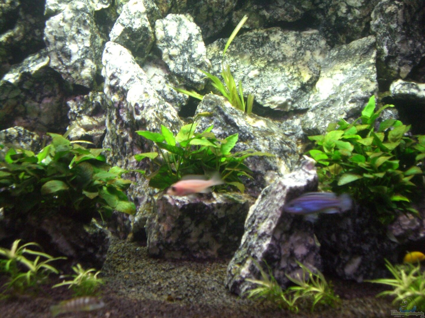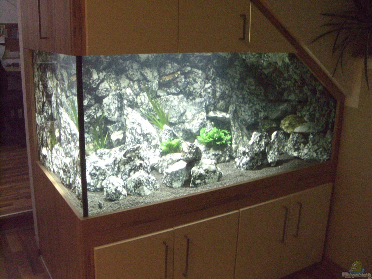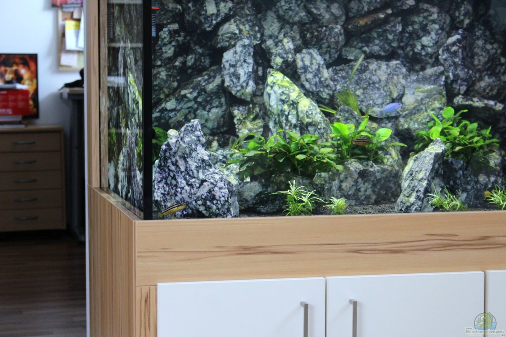 Die 3D Rückwand besteht aus ca. 200 kg echtem Granit. Da die Malawis in ihrer natürlichen Umgebung sehr viele Höhlen als Revier oder zum verstecken vorfinden, wollte ich diese Umgebung so natürlich wie möglich nachgestalten.