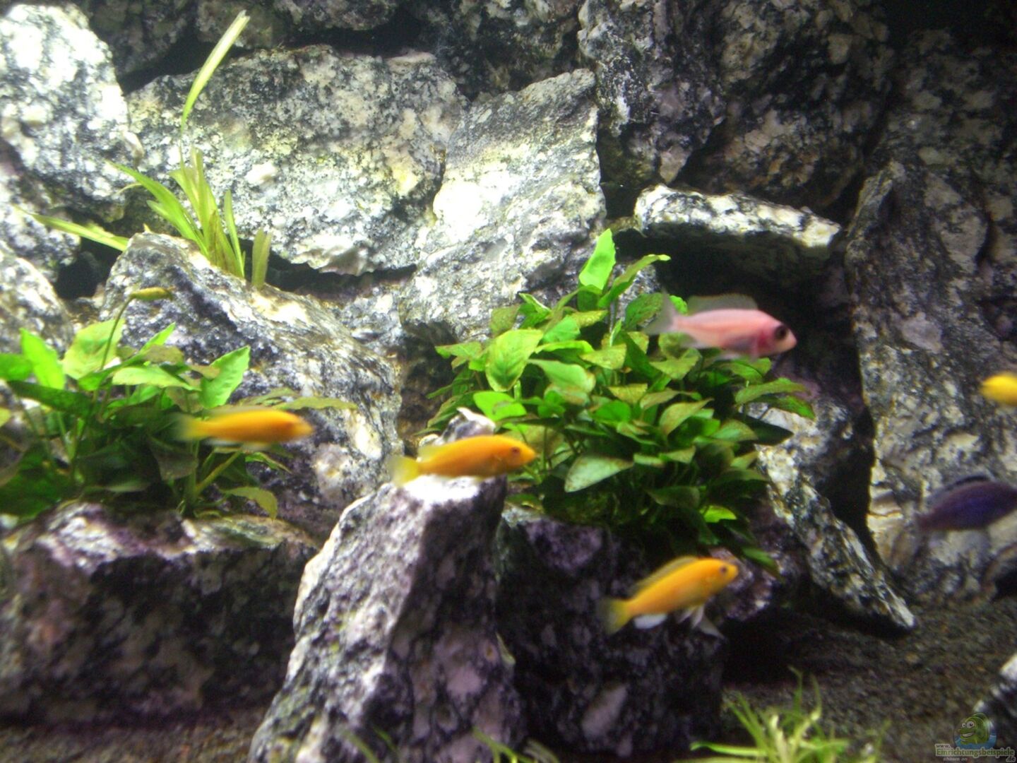 Hurra, die Aulonocaras sind eingezogen. Leider konnten noch nicht alle Aulonocaras geliefert werden, und die Placidochromis fehlen auch noch. Die ersten Aulos sind zwar noch sehr schüchtern, aber nach und nach begeben sie sich schon auf die erste Erkundungstour. Habe leider noch kein richtiges Foto hinbekommen.