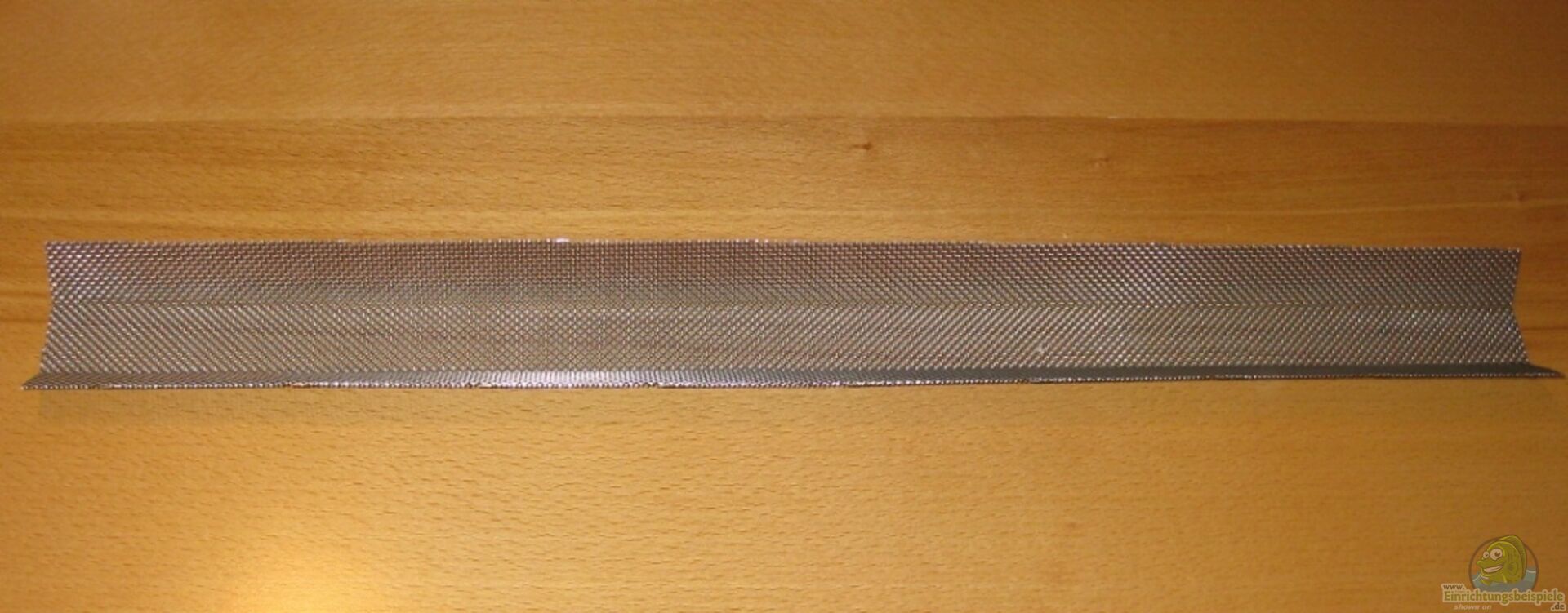 Da es ein Eckaquarium ist und der ganze Steinaufbau auf die hintere Klebung drücken wird, habe ich mich dafür entschieden ein Edelstahl Lochblech einzukleben.