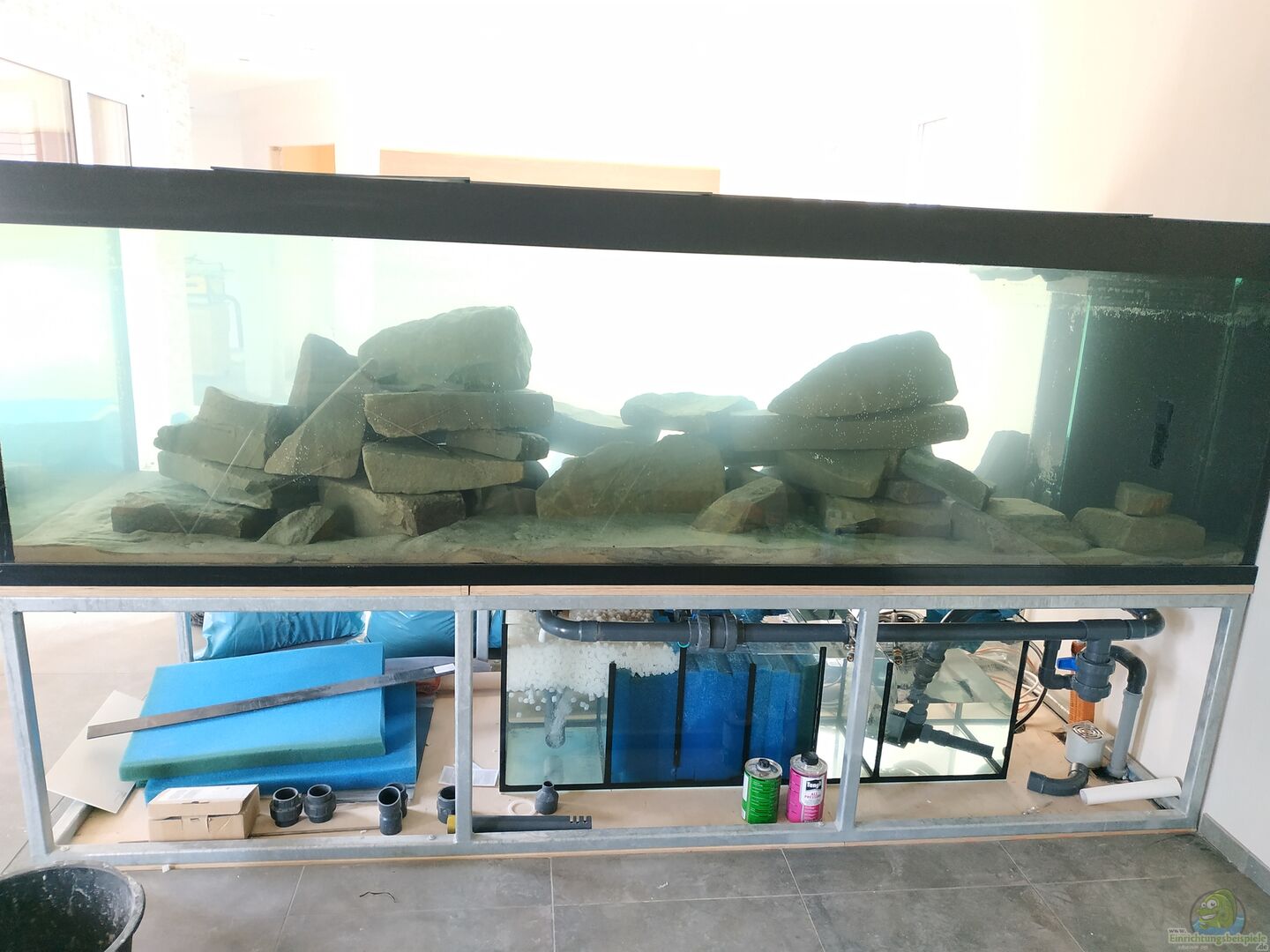 - Anordnung der Steinaufbauten in der Mitte des Beckens, mit vielen Höhlen und Versteckmöglichkeiten