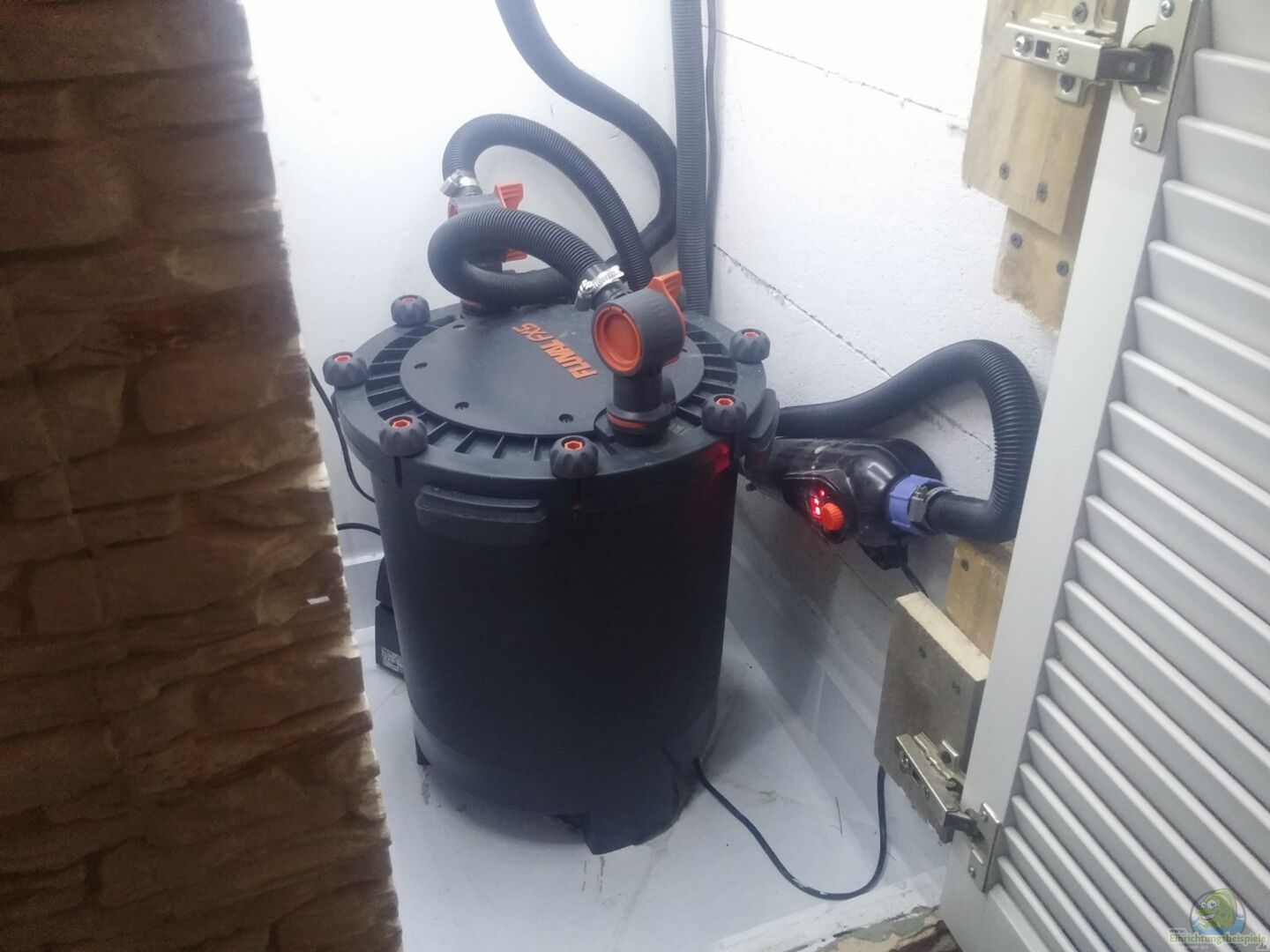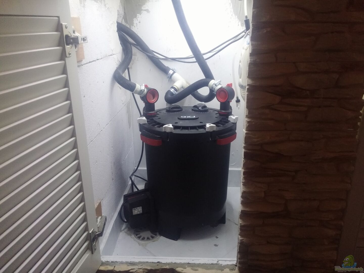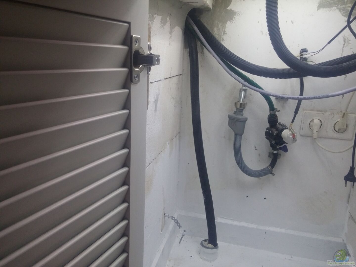 Täglich wird ca.20-30 Liter frisches wasser ins aquarium gelassen durch einem elektroventil, und ???altes??? wasser fliesst gleichzeitig ab ins Kanalisation