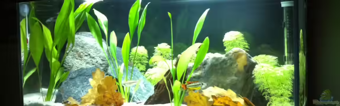 Das Becken ist ein handelsübliches Juwel Rio 240, bei dem ich neben dem Innenfilter auch die bruchanfällige Kunststoffquerstrebe entfernt und durch eine sichere, mechanische Lösung in Form einer Gewindestange ersetzt habe