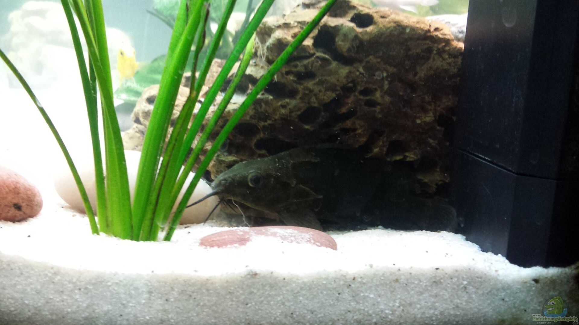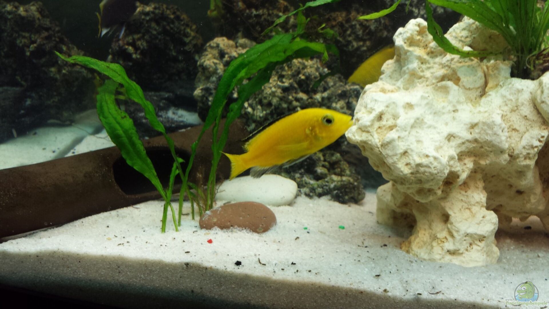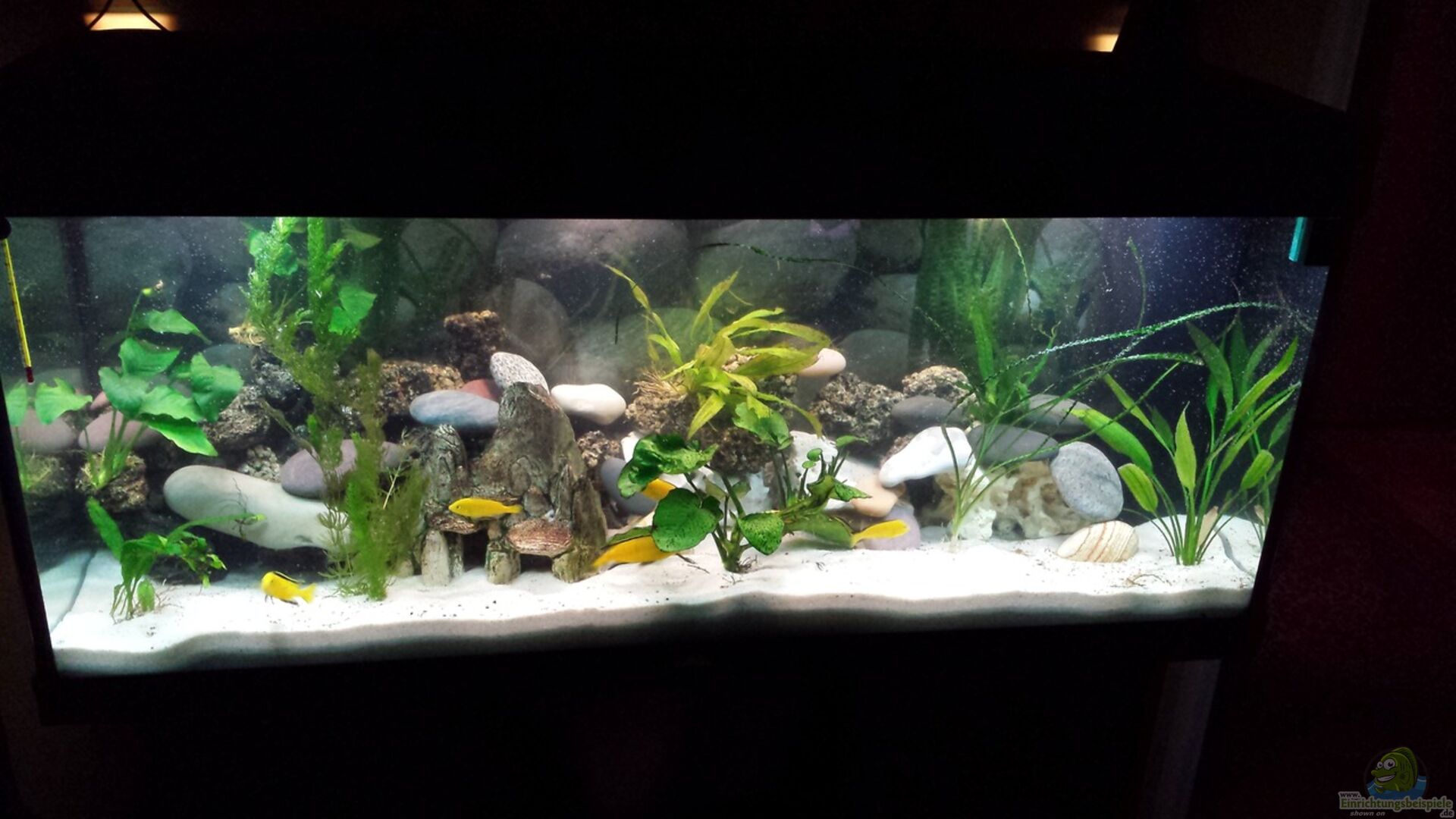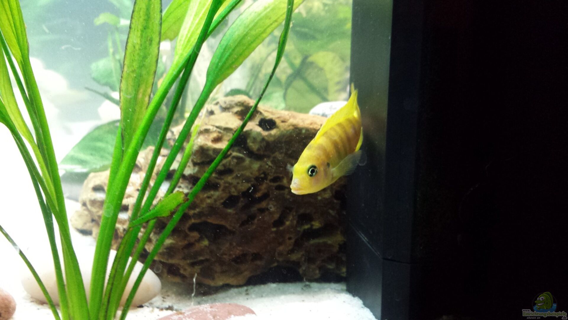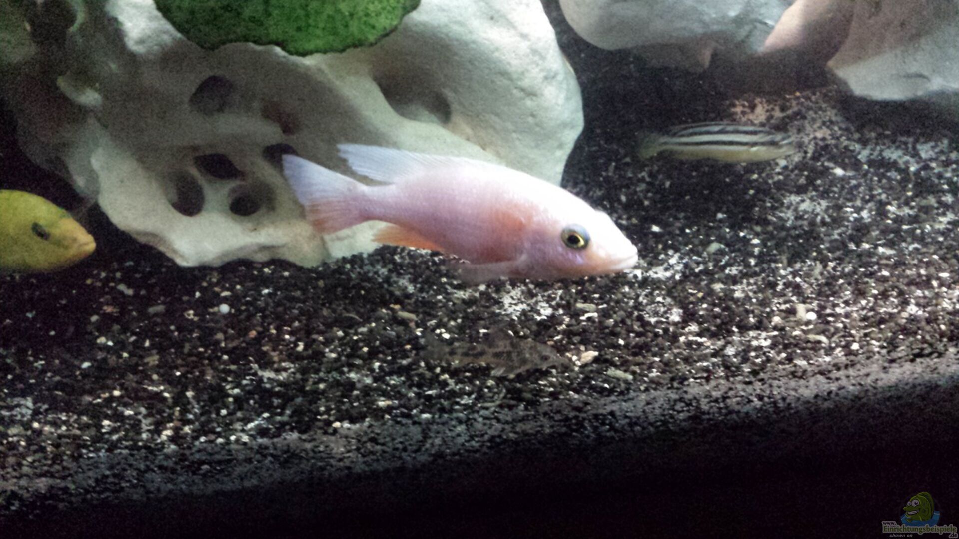 Mische noch schwarzen Sand unter den wei?en so wird das Licht nicht mehr so stark reflektiert. Ich merkte selbst diesen Unterschied in meinem Becken die Malawis sind dadurch weniger schreckhaft geworden.