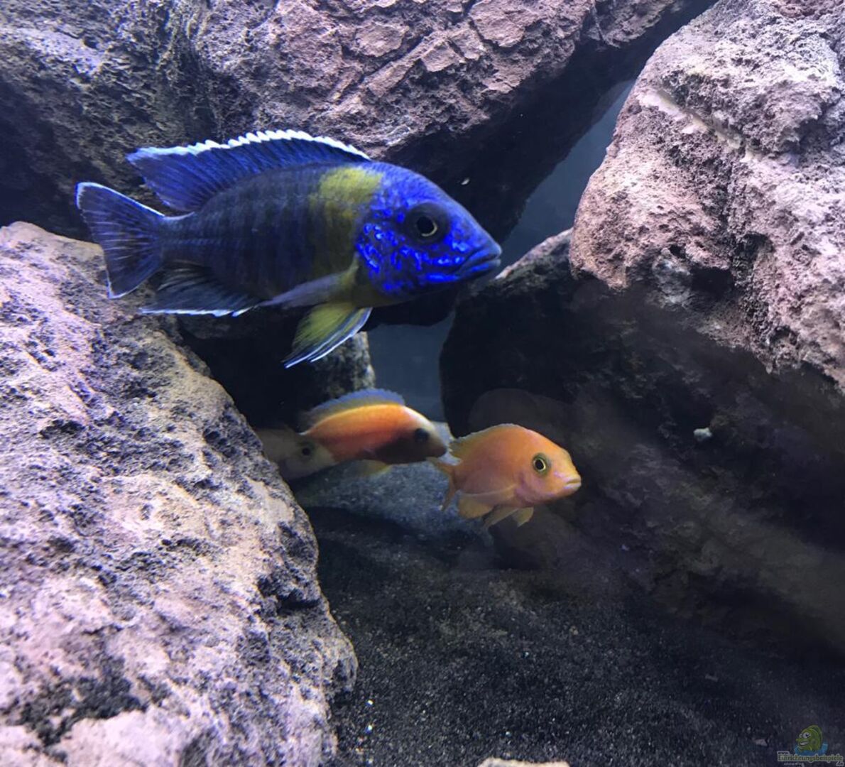 Besatz besteht ausschlie??lich aus Aulonocara Arten sowie eine Jäger-Art (Blauer Leopard-Maulbrüter(Nimbochromis fuscotaeniatus) die das Fisch vermehren etwas einstellen soll.