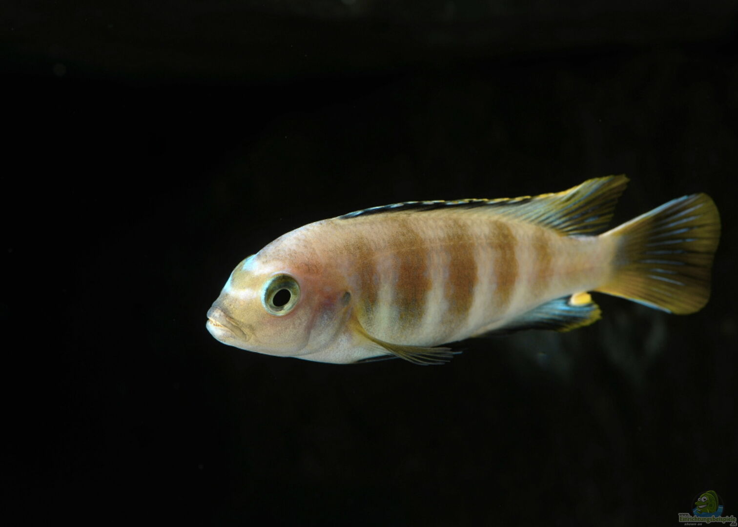 3/7 Pseudotropheus saulosi, wobei aufgrund des Alters von ca. 4 Monaten die genaue Geschlechtsunterscheidung noch schwer fällt.
